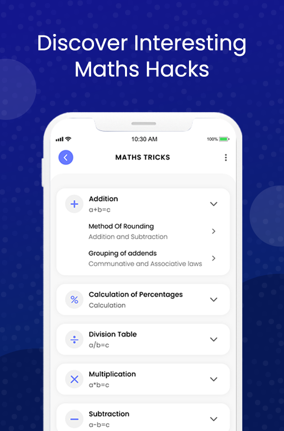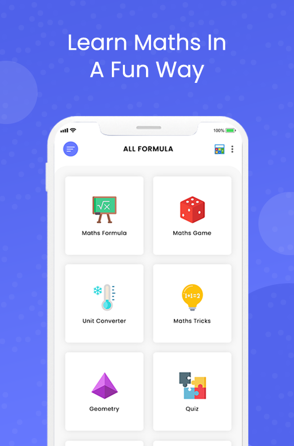 Need a simple way to remember and learn Mathematics formulas? All Maths Formula Android app has all your solutions. You don’t have to refer your fat maths books for a few formula references, just open ‘All Maths Formula’ on your Android device and you will have it all, from basic sums to higher standard or college Maths. This App is designed for every student who studies weather you are a school student or studying in college or more. All maths formula does much more than providing formulas. There are different columns that make learning Maths simpler and enjoyable. Here are all the features you can use in All Maths Formula App; All type of Maths Formulas: Algebra Analytical Geometry Beta gamma Derivative Equations Fourier Geometry Integration Laplace Matrices and Determinants Number Sets Numerical Methods Probability Series Trigonometry Vector calculus identities Z-transforms More than 5+ Maths Games: Maths Master Workout Single player Multiplayer True and False Input maths What’s sign We Also Maths Tricks Addition Calculation of percentages Division Table Multiplication Subtraction a^x exponentiation Unit Converters Basic: Length, Area, Weight, Volume, Temperature, Time Science: Angle, Pressure, Force, Energy, Power, Torque Computing: Storage, Data rate, Prefix, Image Electricity: Charge, Current, Resistance, Conductors, Inductions Miscellaneous: Cooking, Frequency, Radiation You can Also Play Maths Quiz: Test your skills and learns new stuff by playing Maths Quiz. You will find numerous levels here, The first level is unlocked and every next level open when you clear the previous levels. While playing Quiz Player will have 3 lifeline options, True answer will give you five points for a single question and False will minus your two points. Mathematics Riddle: Riddle is the best when you need a break from your studies and at the same time do something productive. Like Quiz here too you have several levels and the first level is unlocked. To unlock other levels you have to keep solving levels. Dictionary: All Maths Formula app has a dictionary column for Mathematic terms when you come across a new term while solving suns you can search for it here. There are games so you don’t feel bored and learn maths in a fun way. Maths Symbol: Algebra Symbol Basic math Symbols Calculus and analytical symbols Combinatorics symbols Geometry symbols Greek alphabets symbols Linear Algebra symbols Logic symbols Roman numerals Set theory symbols Probability and statistics symbols Calculation Percentage Perimeter/Area Volume Equation server Decimal to fraction Prime Checker Heron’s Formula Fraction Simplifier Number Generator GCF/LCM Numeric Base Circle Solver Right Triangle Solver Proportions/Ratio Average/Mean Combinations Division Exponential growth Exponents Factorial Fractions calculator Multiplication Neutral Logarithm Percentage Calculator Percentage change calculator Percentage increase/decrease calculator Pythagorean theorem Calculator Scientific Notation Calculator Square Root Calculator Standard Deviation Calculator Factorization Differentiation Integration Simple interest calculator Compound interest Calculator Tangent Calculator Variance calculator Weighted Average Calculator Trigonometry calculator Subtraction Calculator Subtracting fraction calculator Chcek All Math Tables Multiplication addition Subtraction Factorial, Square, Square Root, Square cube, cube root Maths Formula app simplifies all kinds of Math problems. If you are the kind of person who hates Maths, you should definitely try this app, it makes maths easy and understandable, it delivers step by step solution. This app is also good for kids, teach your child maths tricks every day and make maths interesting for them.