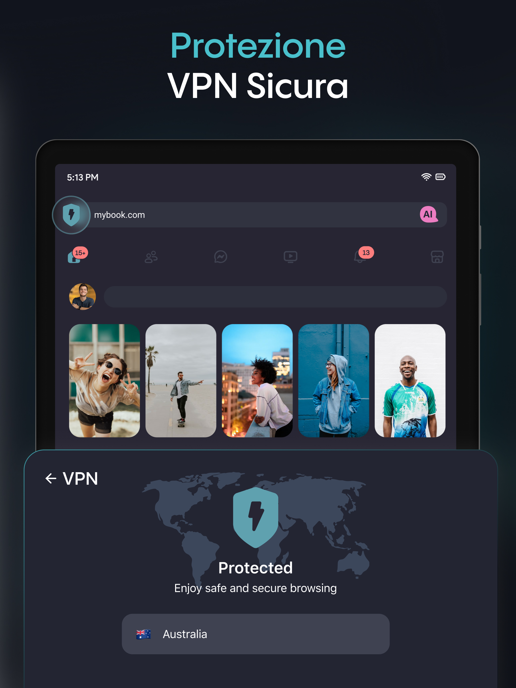 Navigazione sicura con VPN integrata per proteggere la tua privacy.