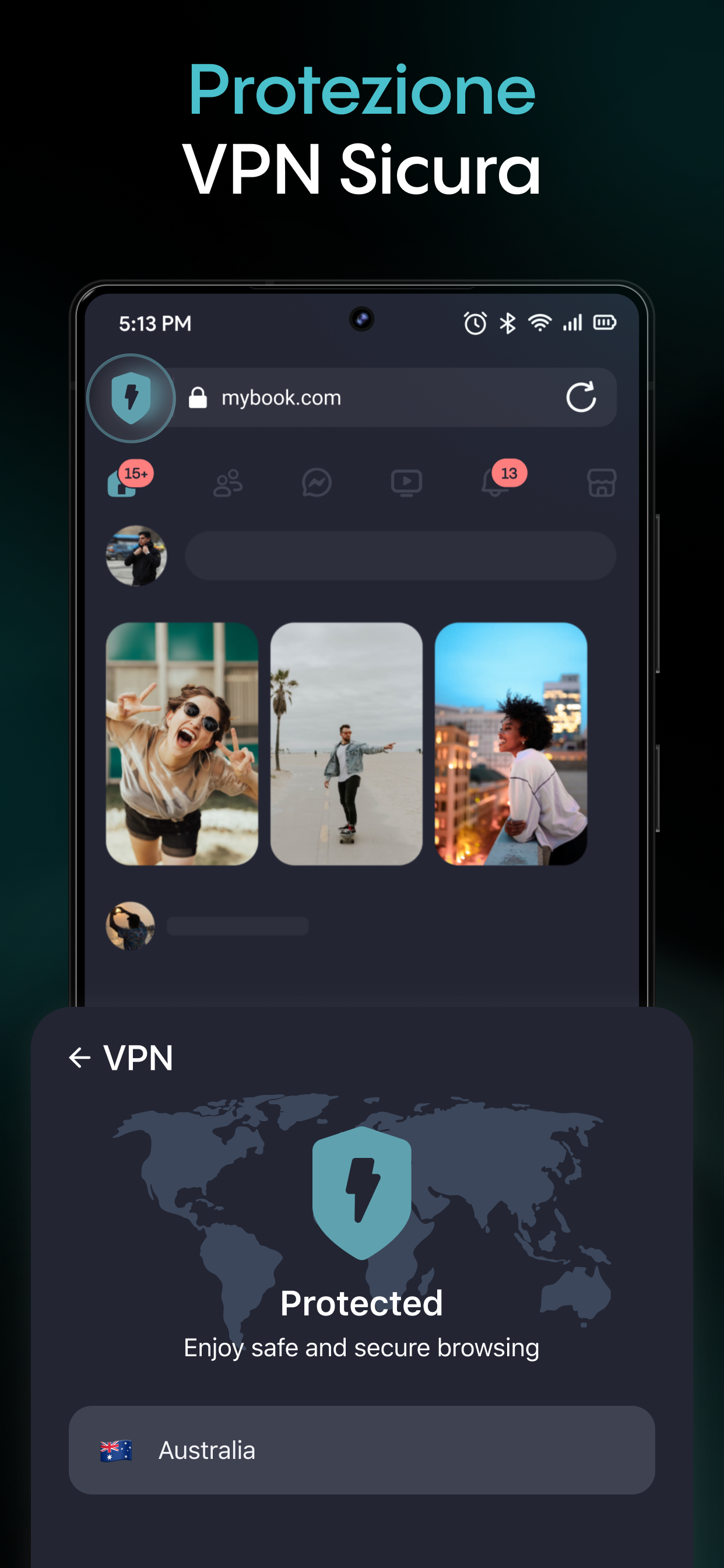 Navigazione sicura con VPN integrata per proteggere la tua privacy.