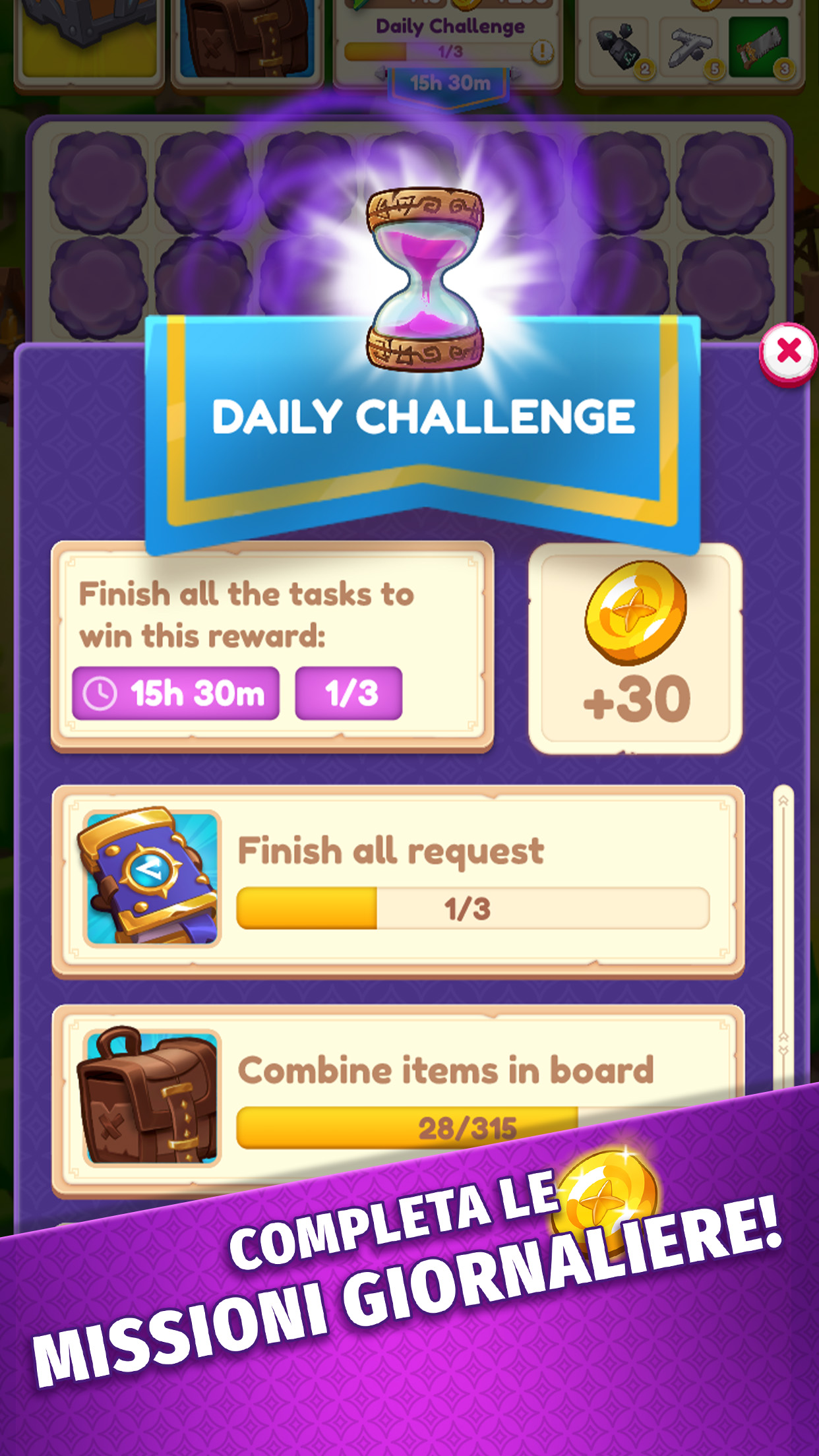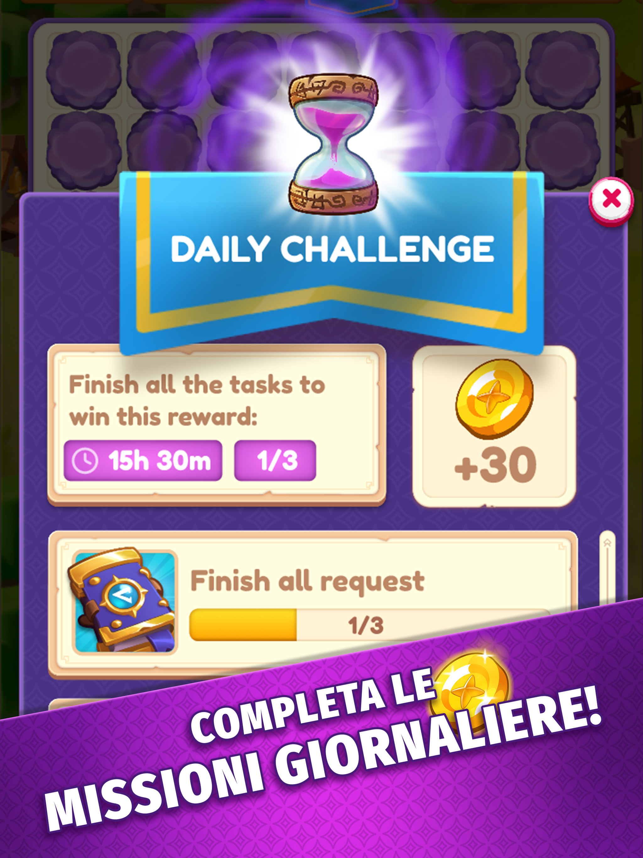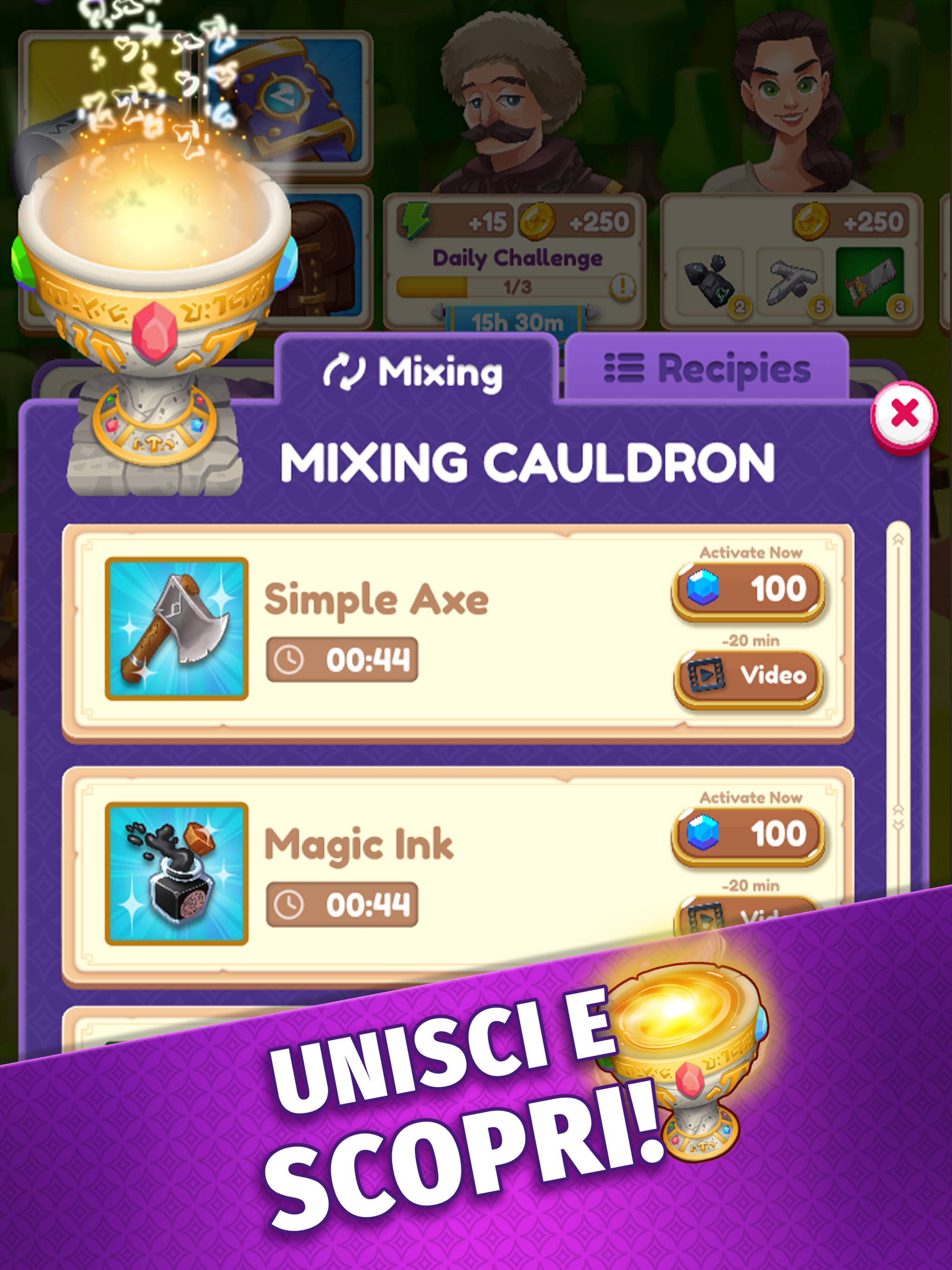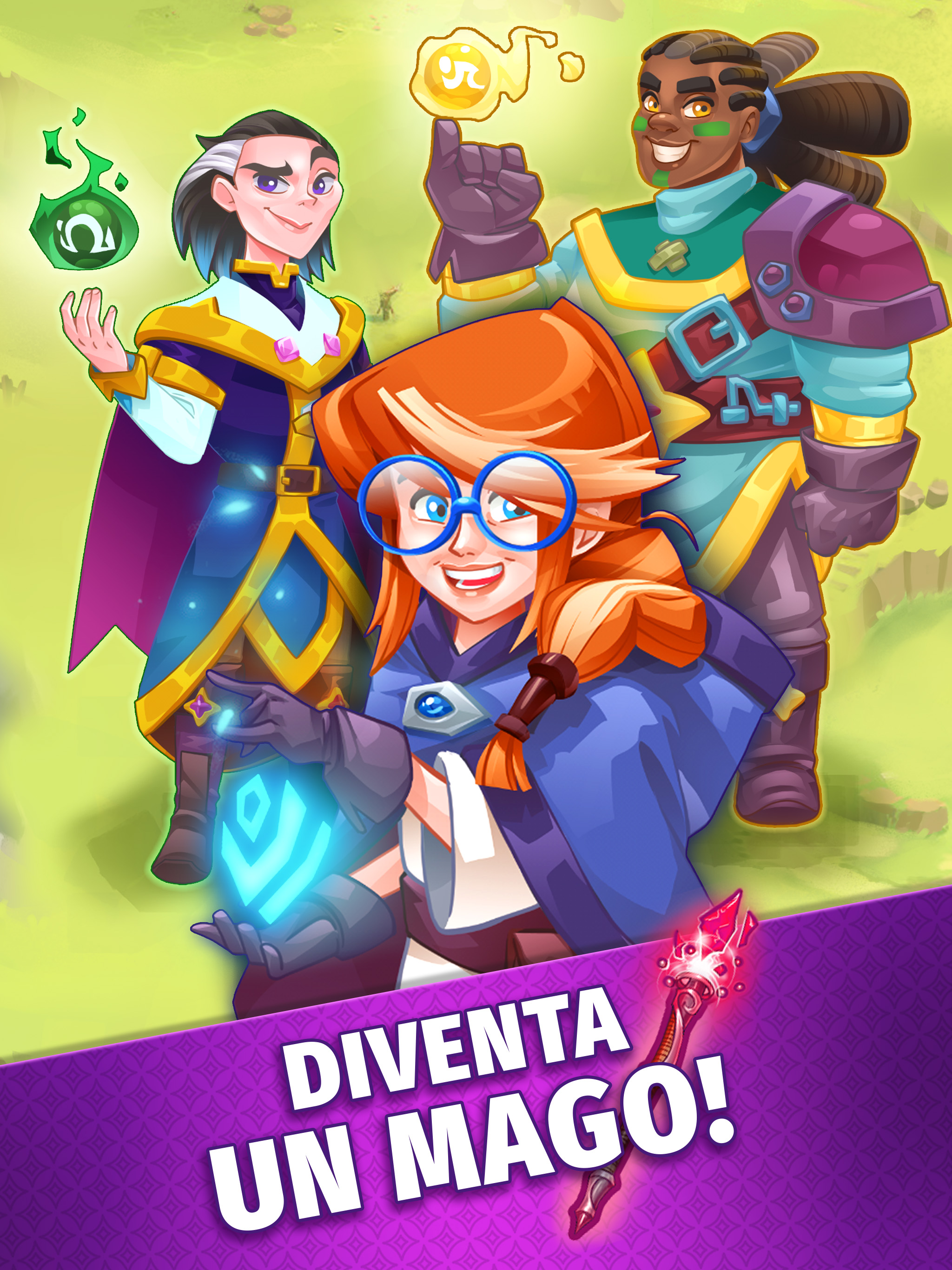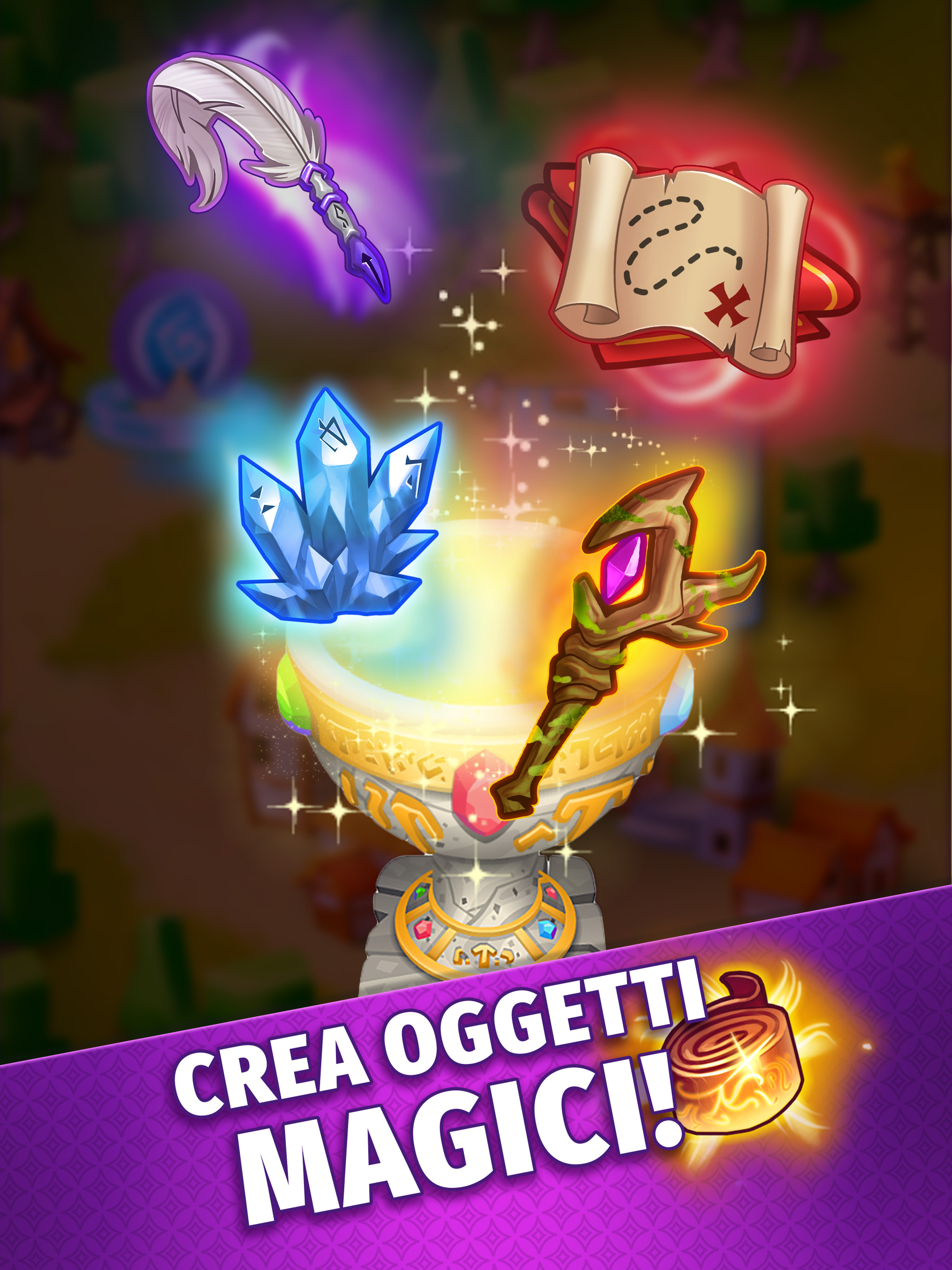 Qual è l'unico incantesimo che ogni strega, mago o stregone deve conoscere alla perfezione? L'incantesimo per evocare un drago? Quello per mescolare una pozione curativa? O magari un incantesimo fatato? Beh, in realtà non è nessuno di questi: si tratta dell'incantesimo di fusione! Intraprendi un viaggio magico, e scopri un incredibile villaggio alla disperata ricerca di un mago dalle leggendarie capacità di creazione e unione! Usa la magia e l'alchimia per creare tutti i tipi di oggetti stravaganti e misteriosi e soddisfare le richieste di un colorato cast di cittadini fantastici. Fondi i metalli magici per proteggere un drago mostruoso, aiuta un elfo coi materiali leggendari a forgiare un arco per uccidere le bestie o semplicemente renditi utile nella taverna locale: non potrai sapere quale missione ti toccherà svolgere grazie alle tue peculiari capacità con gli incantesimi di fusione! DIVENTA UN MAGO DELLA FUSIONE Combina tantissimi tipi di articoli magici per creare oggetti nuovi e misteriosi, e aiuta gli abitanti di un villaggio fantastico! Raggruppa gli oggetti magici insieme per forgiarli in materiali migliori, e mescola gli oggetti nel tuo calderone alchemico per ottenere risultati incredibili e talvolta sorprendenti! SCOPRI UNA TERRA MAGICA Diventa il nuovo abitante di una fantastica città colorata e conosci i suoi stravaganti abitanti! Proprietari di taverne, una principessa guerriera elfa, spiriti fatati nei boschi, una potente strega che prepara una pozione d'amore meschina o persino uno stregone a caccia di bestie: questa città ha tutto. Ma fai attenzione: non si sa mai chi potrebbe essere in agguato nell'ombra, pronto a lanciarti addosso un mostruoso incantesimo o una pozione maledetta! COMPLETA LE MISSIONI E SALVA IL VILLAGGIO! La tua padronanza degli incantesimi di fusione sarà molto richiesta in questa città fantastica! Interpreta il ruolo del mago della città e aiuta tutti ad affrontare le faccende quotidiane, dallo sterminio dei mostri, l'evocazione dei draghi, l’incantamento delle fate, la paga degli stregoni, fino all'uccisione delle bestie! DIVENTA IL PIÙ GRANDE DEI MAGHI DI FUSIONE Sfrutta la tua conoscenza della magia e dell'alchimia per forgiare i migliori oggetti e manufatti fantastici che questa città abbia mai visto! Dalle pozioni ai metalli leggendari, dimostra ai cittadini che il tuo calderone non è roba da taverna, e che al contrario è degno anche della più famosa strega elfa che lancia incantesimi di fusione! La vita di un mago della fusione è frenetica in questa città fantastica, non solo per tutte le richieste, ma soprattutto per quanto è divertente preparare tutto in un calderone per le pozioni magiche! Da esperto del villaggio nonché alchimista, mago di fusione, oracolo, dottore degli elfi, creatore di pozioni, stregone ammazza-draghi, locandiere e talvolta giullare, avrai sempre un qualche lavoro da fare, ma non ti sembrerà mai un lavoro finché sarà sempre così magico e divertente! Forse potresti vedertela con qualche mostro, ma non importa... Inizia subito la tua nuova carriera di mago della fusione!