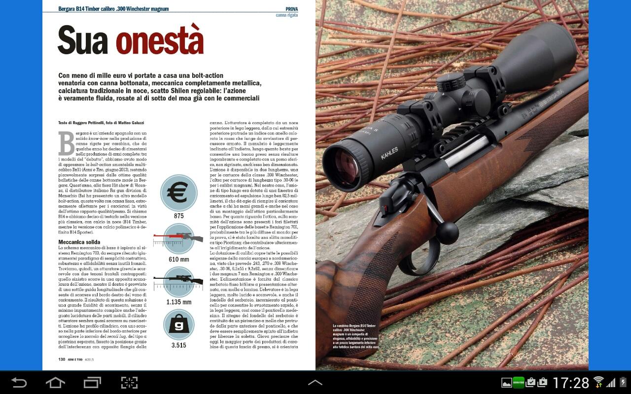 Nata nel 1988 ARMI E TIRO è la rivista più ricca e completa per contenuti di attualità, di tecnica e di servizio. Il cuore della rivista è rappresentato dalle prove sia delle armi (sportive, da difesa, da caccia e da collezione) sia delle munizioni, completate dai dati riguardanti la ricarica.