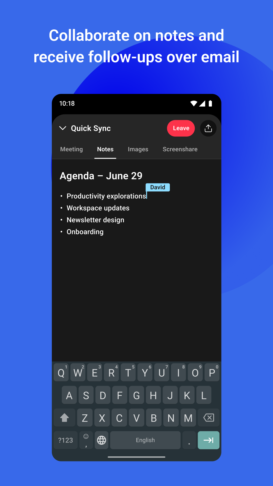 - Collabora alle note e ricevi un riepilogo di follow-up tramite e-mail dopo la chiamata