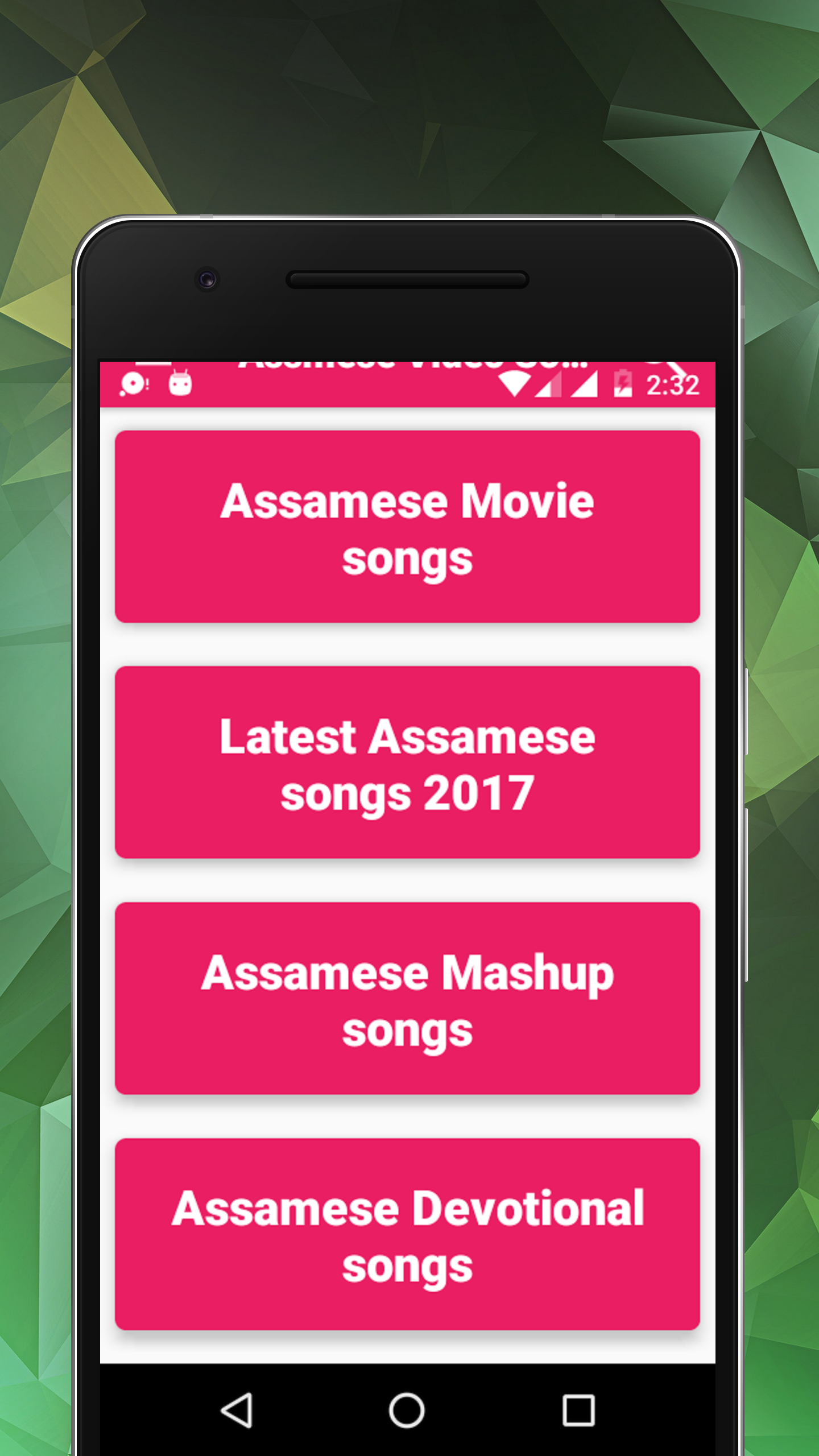 Assamese Video Song (NEW + HD) 2017 - is an Android App comes with the latest collection of Hit Popular assamese videos 2017. This app contains Assamese Romantic Song, Assamese Best Song, Assamese Video Song, Assamese Sad Song, Assamese Bihu Song, Assamese Hot Song, Assamese Music Video Song, Assamese 2017 Song, and many others song in this app here. Here you will get best assamese songs instantly and more. This app provides easiest way to watch, find, best video collection that are popular and critics rate the highest are presented first. All Latest + Top + New + Hit Video songs of - Zubeen Garg , Bihuand are available in this app. I hope like to this Assamese Best Song application. So Download this application right now and enjoy beautiful songs of Assamese. In this app you will get Assamese Video songs. Exceptional music along with highly creative lyrics add to mesmerizing voices of yesteryears' famous assamese singers. I hope you will have fun using this app by watching assam lovely songs. These songs are the best musical masterpieces ever composed in Assamese. Get this App and listen to the evergreen Hit and Popular Assamese Songs non-stop.This App helps listen to 10000+ of the best ageless Hit Assamese music of world right on your mobile device.The best audio streaming to enjoy the perfect piece of exceptional musical works without interruptions. Music Friendly Features :- 📌 Very easy Interface 📌 Search unlimited song with flexibility 📌 Material design UI implemented 📌 Play seamless music from each of the category. 📌 Daily update new categories of Assamese video song 2017 📌 Get notification on addition of new songs and features 📌 User can also view more application from developer 📌 Personalize your play list by marking a song as your Favorite. 📌 Rate the song as per your likes. MUSIC CATEGORIES :-> New Assamese songs , Assamese Hit songs, Assamese Old songs, Assamese Love songs, Assamese Sad songs, Zubeen Garg songs, Bihu Assamese songs, Assamese Movie songs, Latest Assamese songs 2017, Assamese Mashup songs, Assamese Devotional songs, Assamese Folk songs, Assamese Evergreen songs, Top Assamese songs, Assamese Classical songs, Assamese Kids songs, Assamese Instrumental songs, Assamese Bhajan songs, Assamese DJ Remix songs, Assamese Melody songs NEW, Assam Recipes and many more. Thank you for your attention to application you can comment and encouraged the developers With 5 star ★★★★★ rating. Disclaimer: - The content provided in this app is hosted by YouTube and is available in public domain. We do not upload any videos to YouTube or not showing any modified content. This app provided the organized way to select songs and watch videos.