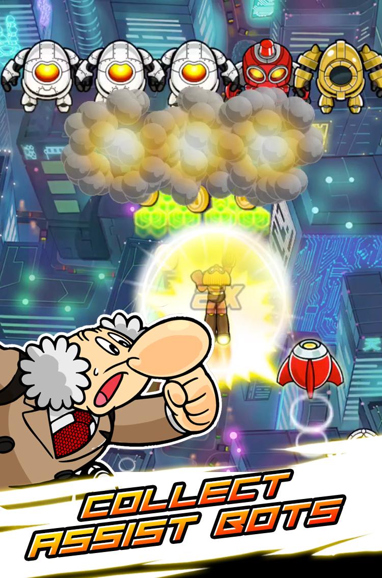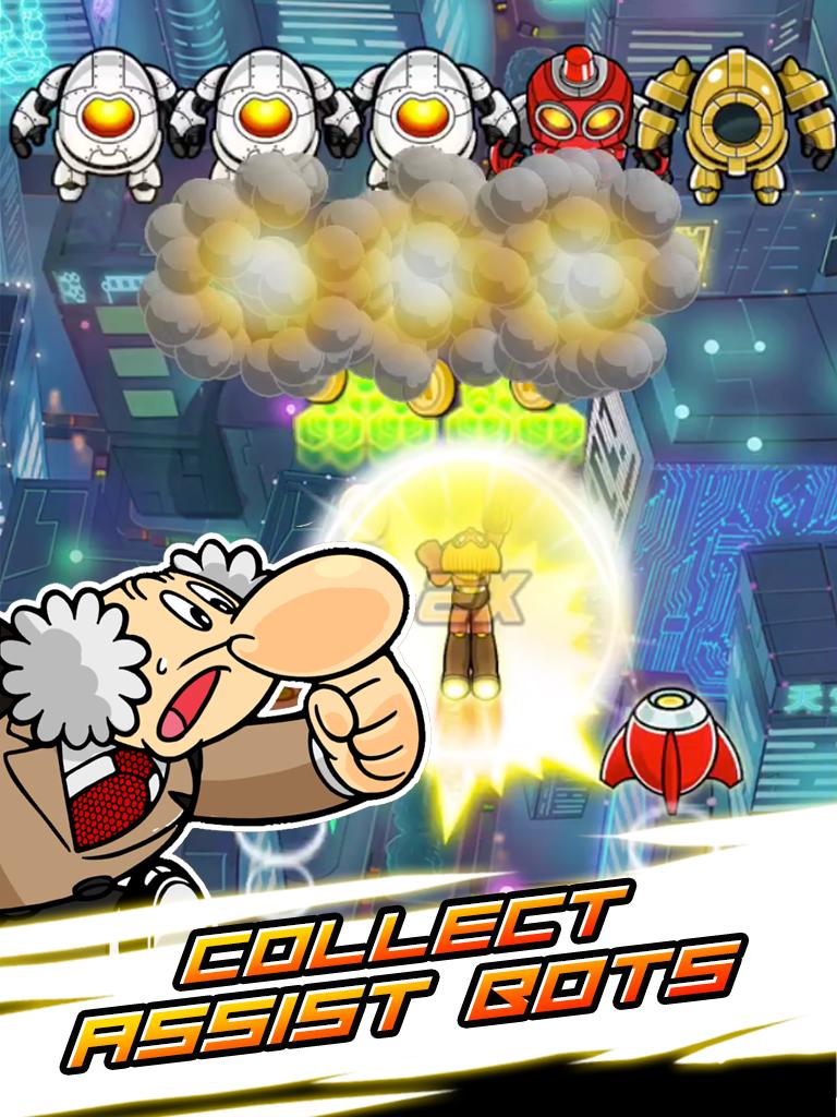Guida Astro attraverso i pericoli come le ondate dei robot ed i bombardamenti coi missili.