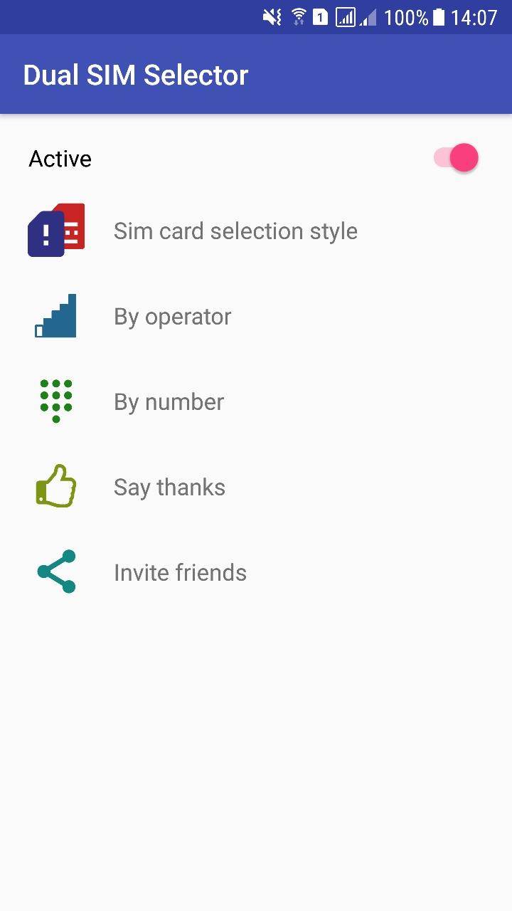 Dual Sim Selector is a very useful application for phones with two SIM cards. After installation and configuration this application will save your time and money! Since based on your settings, the application will automatically determine from which SIM card to make an outgoing call. Capabilities: 1. Binding a specific number to a specific sim card 2. Binding a certain operator to a specific sim card 3. Any outgoing call will be intercepted and a choice of sim for the call will be offered (If items 1 and 2 are not configured)