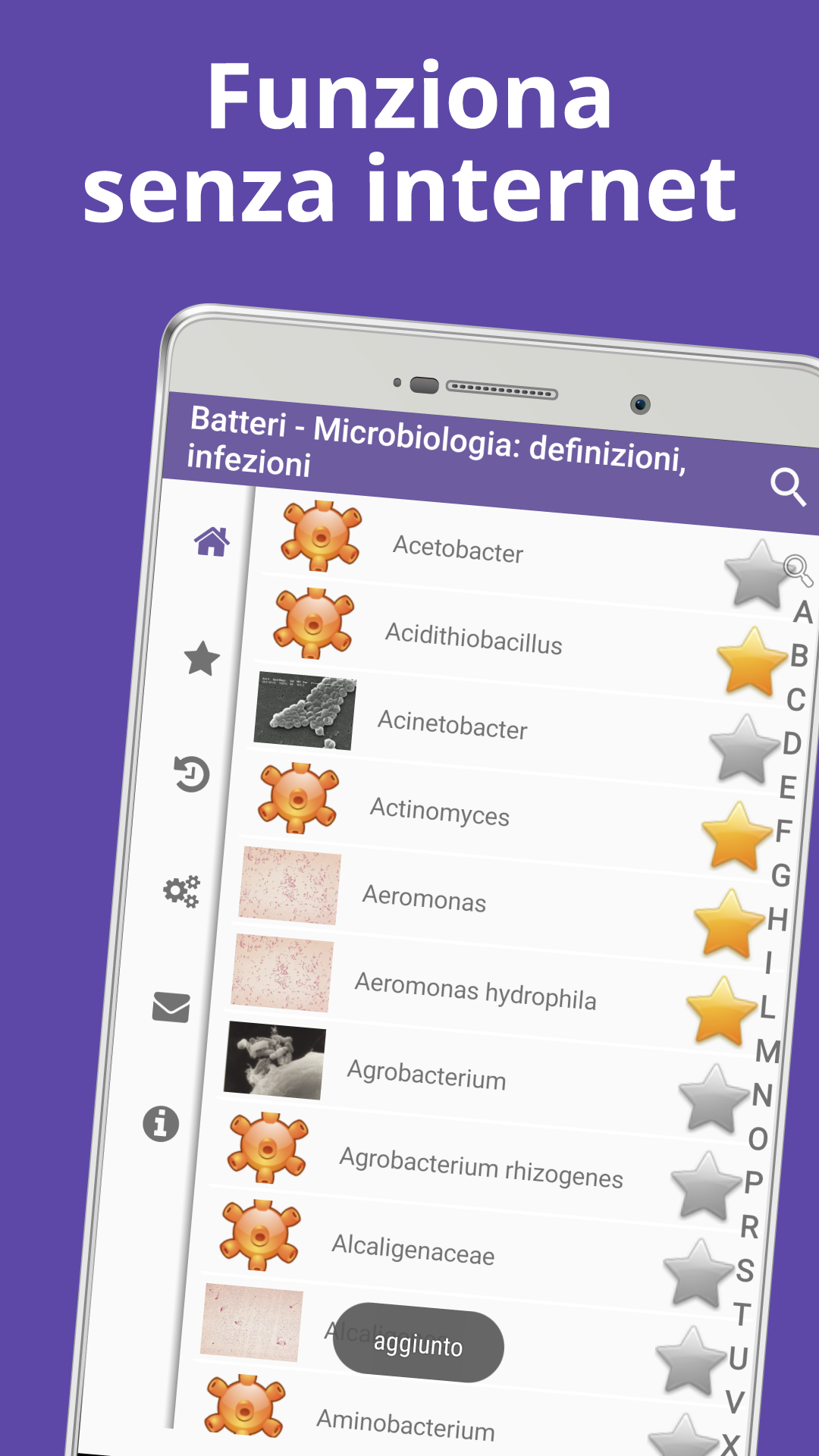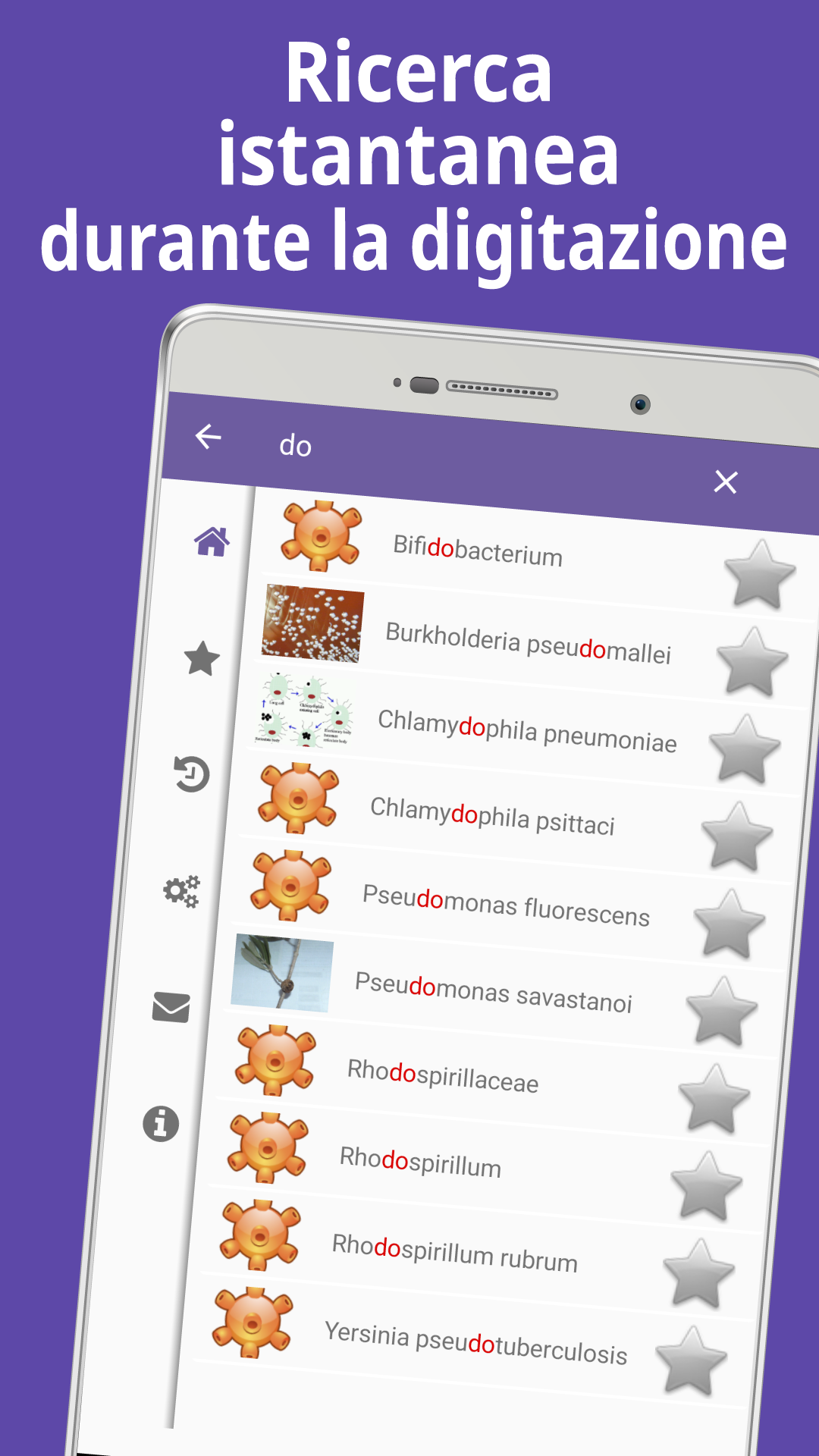 • lavorare offline: database impacchettato con l'app, nessun costo per i dati durante la ricerca;
