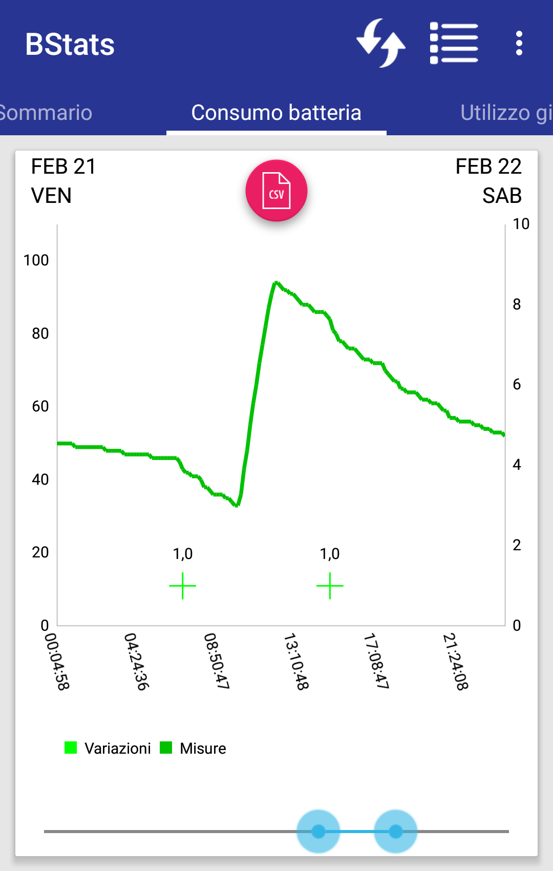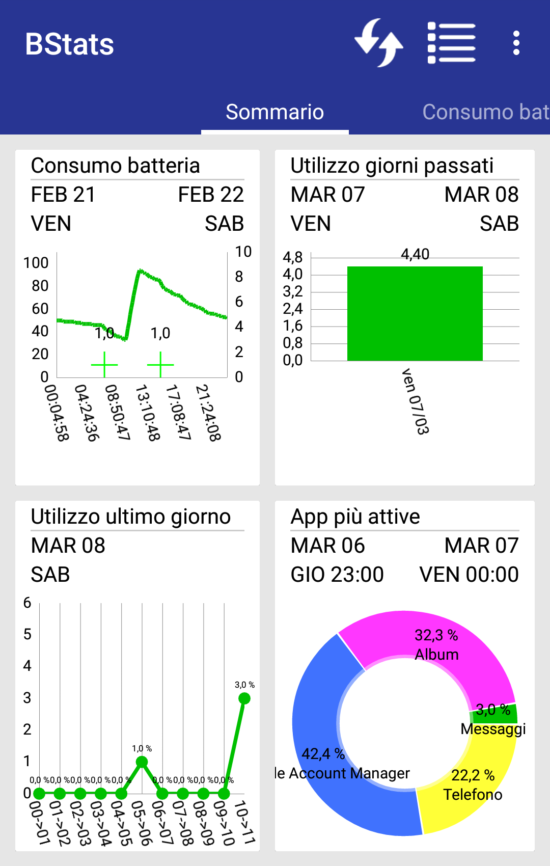 Attraverso semplici grafici puoi visualizzare le statistiche batteria