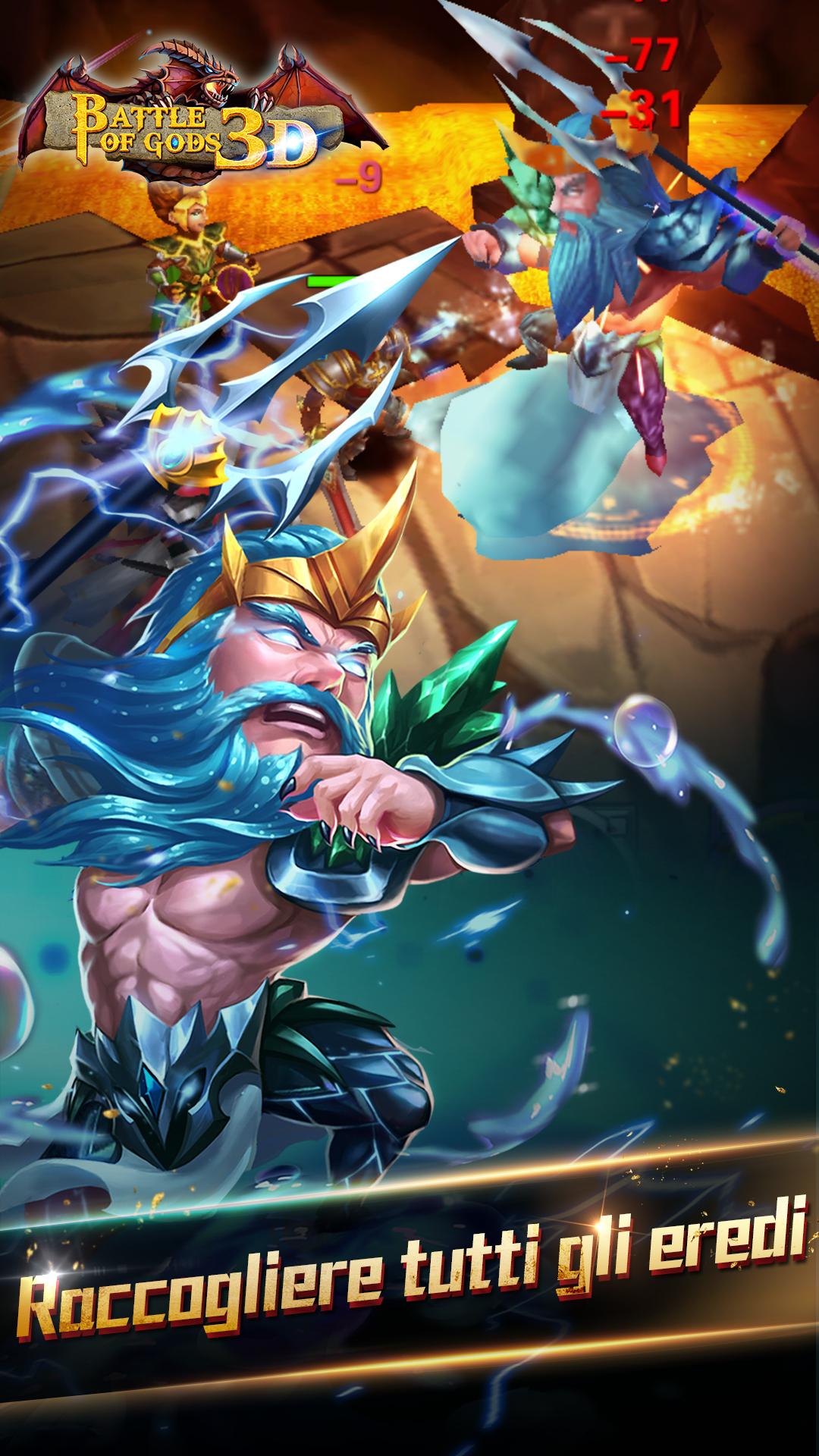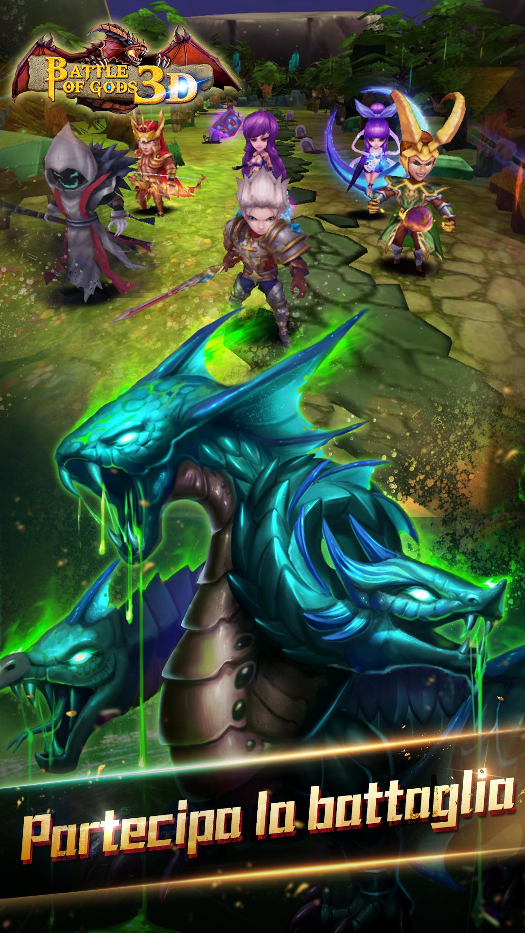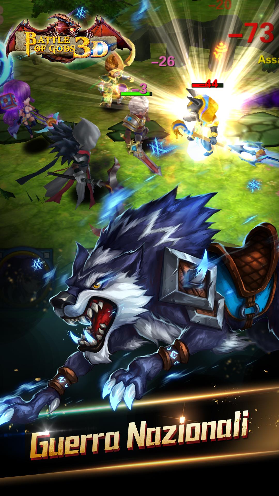 Molto tempo fa, il mondo aveva solo un continente, con molti dèi vivevano su di esso. Il potere degli dei potrebbe distruggere il mondo intero, ed anche le loro ambizioni rovinerebbe tutto. Le guerre non finivano mai. Venne il giorno, quando le guerre e gli dei furono scomparsi, le terre scoppiò in 4 parti di improvvisa. Cosa è successo alla fine? Questo diventa un mistero che nessuno ha mai capito. Dopo gli dei furono scomparsi, una nuova specie - la umana, è apparsa sulle terre. Hanno ereditato la conoscenza degli dei e hanno costruito i paesi con l'eredità di conoscenza da dei, insieme con le loro ambizioni, la furbizia, le lotte e le guerre .... In un lungo periodo di tempo, un certo potere più orribile sta per nascere, che risveglia solo tra minoranza di la gente. Essi sono chiamati la "Eredi". Non combattono per lo scopo santo come salvare il mondo. Invece, gli Eredi combattono per la sopravvivenza, la famiglia, e per soddisfare le loro ambizioni che senza fine! Eredi che hanno gli stessi pensieri uniscono ed aiutano tra di loro per combattere contro il mondo intero, ed è proprio da questo motivo che il Battle of Gods proviene. 【Caratteristiche】 Crescita: Eredita di qualità, Assorbimnto di Horcrux, Attivazione di abilità ... Ti mostra ogni volta qualcosa di diverso Modo di gioco: Sfida di Boss, Tesori Mistici, Esplorare il Portone al Paradiso, Tana di Abyss, Torre Apocalisse ... Più nuovi modo di gioco in arrivo. Titolo Arena: Sconfiggi i forti rivali uttilizzando la micro-operazione con la punta di dita e l’abilità interruttive, per vincere i titoli più elevati! Guerra Nazionale: Ascesa - Sviluppo - Espansione - Prosperità - Zenith. Tutti giocatori possono aggiornare nazioni trami consumi di Stamina, Energia, Oro e diamanti. Dopo l'aggiornamento, puoi saccheggiare risorse da altre nazioni nel mondo sotto la direzione del Re. Cronache: Ogni giocatore che è diventato il re può essere registrato in Cronache, e diventa una leggenda eterna! Per qualsiasi domande o commenti sul " Battle of Gods ", contattaci tramite questo link: https://www.facebook.com/battleofgod.eu