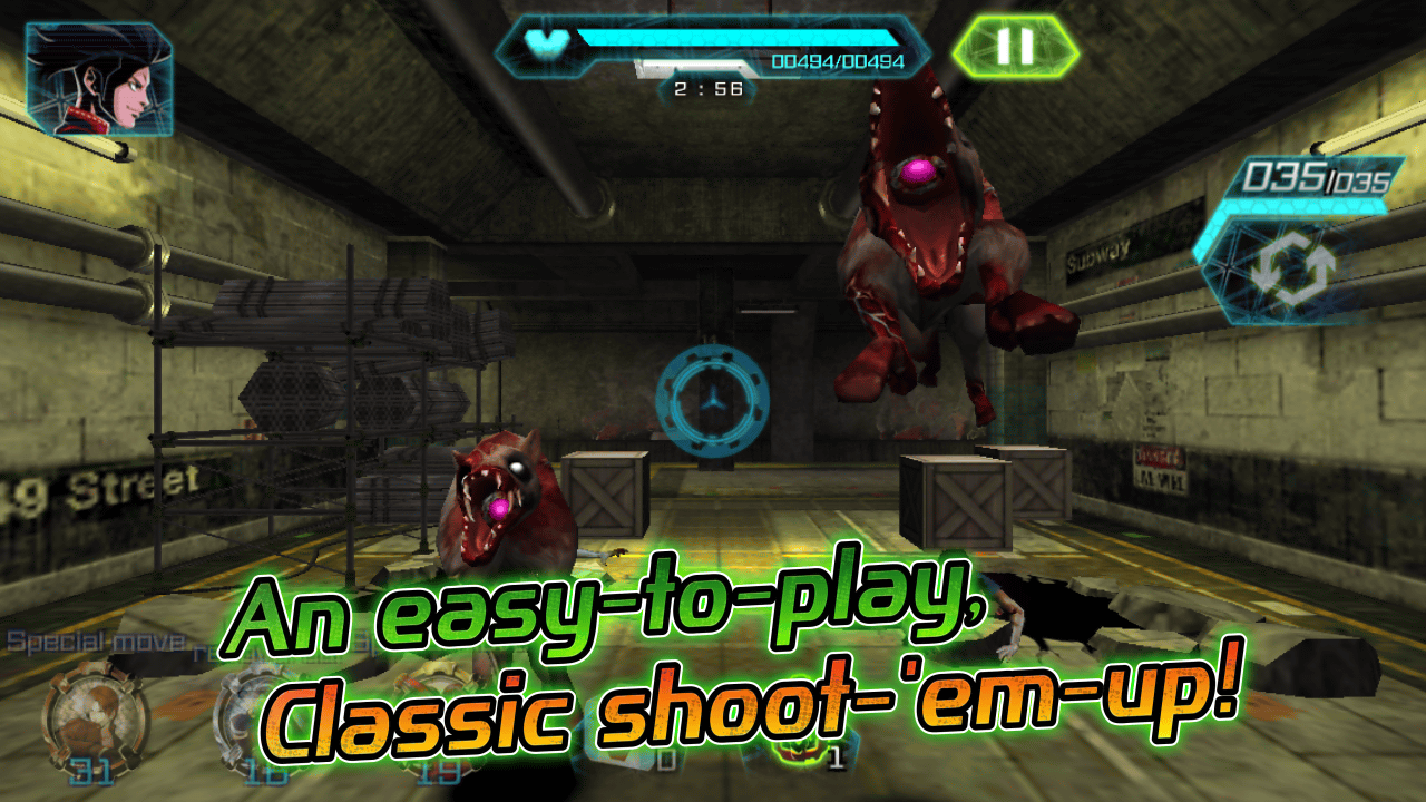 “BEAST BUSTERS” and “THE KING OF FIGHTERS”, legendary SNK game series are both celebrating respectively their 25th and 20th anniversary this year, and return in an ultimate cross over experience! Play in this FREE non-stop action zombie shooting game as a member of the “Beast Busters” mercenary team or as a famous character from the “KOF” fighting game series, and shoot down the Beasts who came back to life until the last one! With its “Multiplay” game mode, in which you play with your friends and advance together through stages, its Fighters Cores, items in which inhabit the power of KOF fighters and you can power up or make evolve, “Skills” that allow you to perform Special Moves, and many more features, “BEAST BUSTERS featuring KOF” can be enjoyed in many ways! Destroy all swarming zombies!
