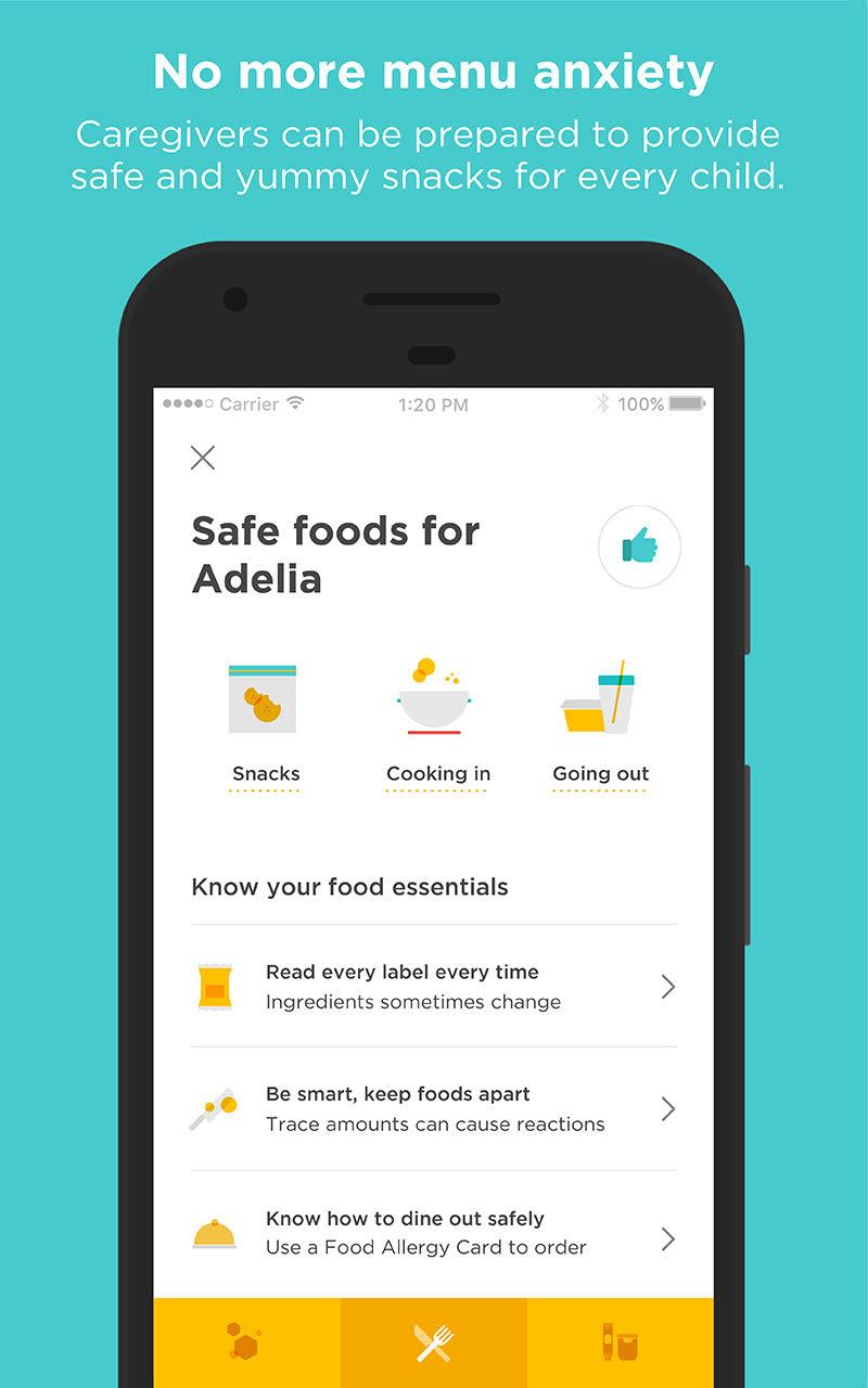 * Contenuto precompilato di Belay su come si presenta una reazione anafilattica, come leggere le etichette e come ordinare in un ristorante