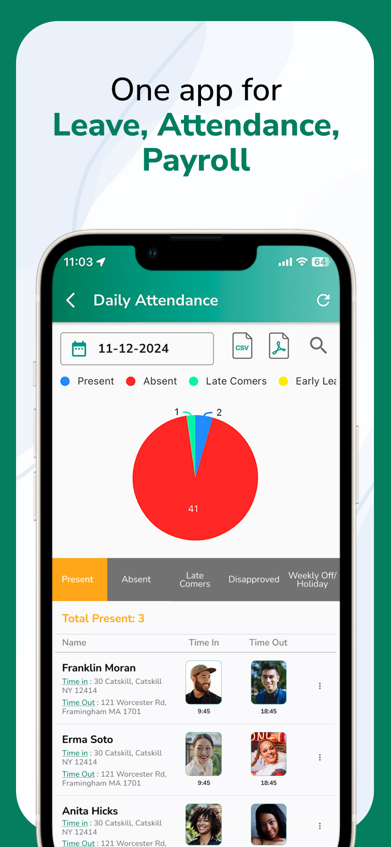6. Rilevazione presenze offline: Monitoraggio del tempo offline per team remoti. Funziona senza internet nelle aree rurali e sulle piattaforme petrolifere, dove non è disponibile il servizio per i dispositivi di rilevazione presenze.