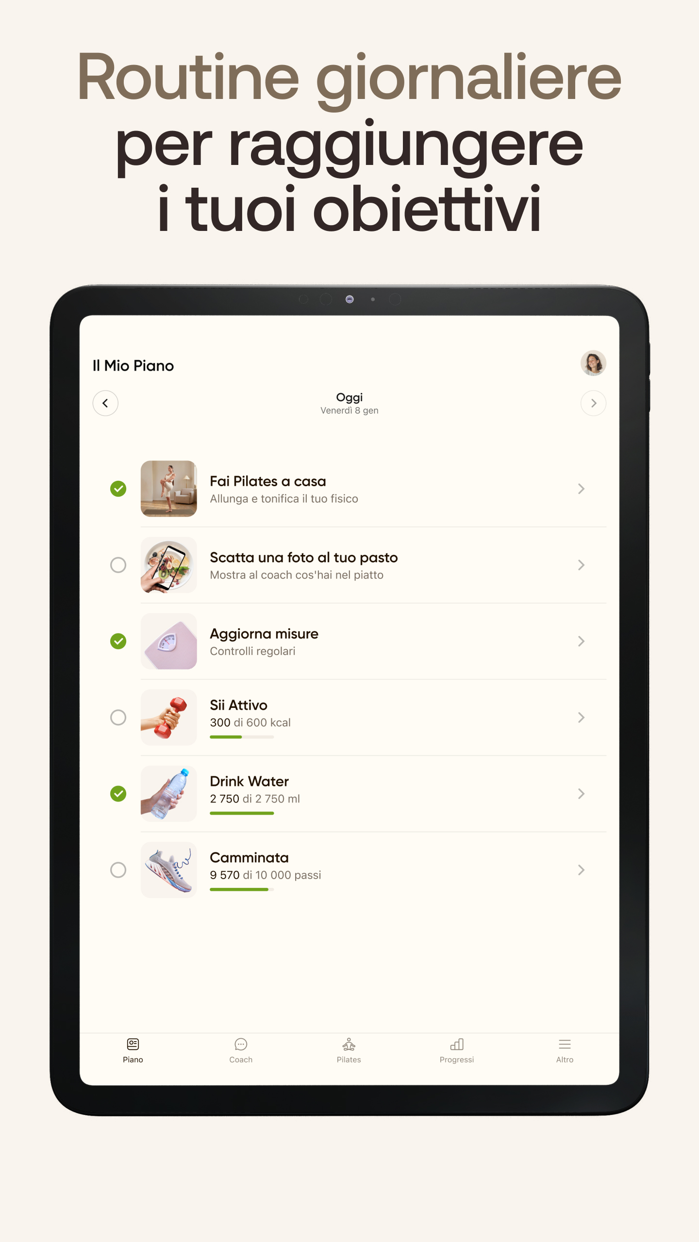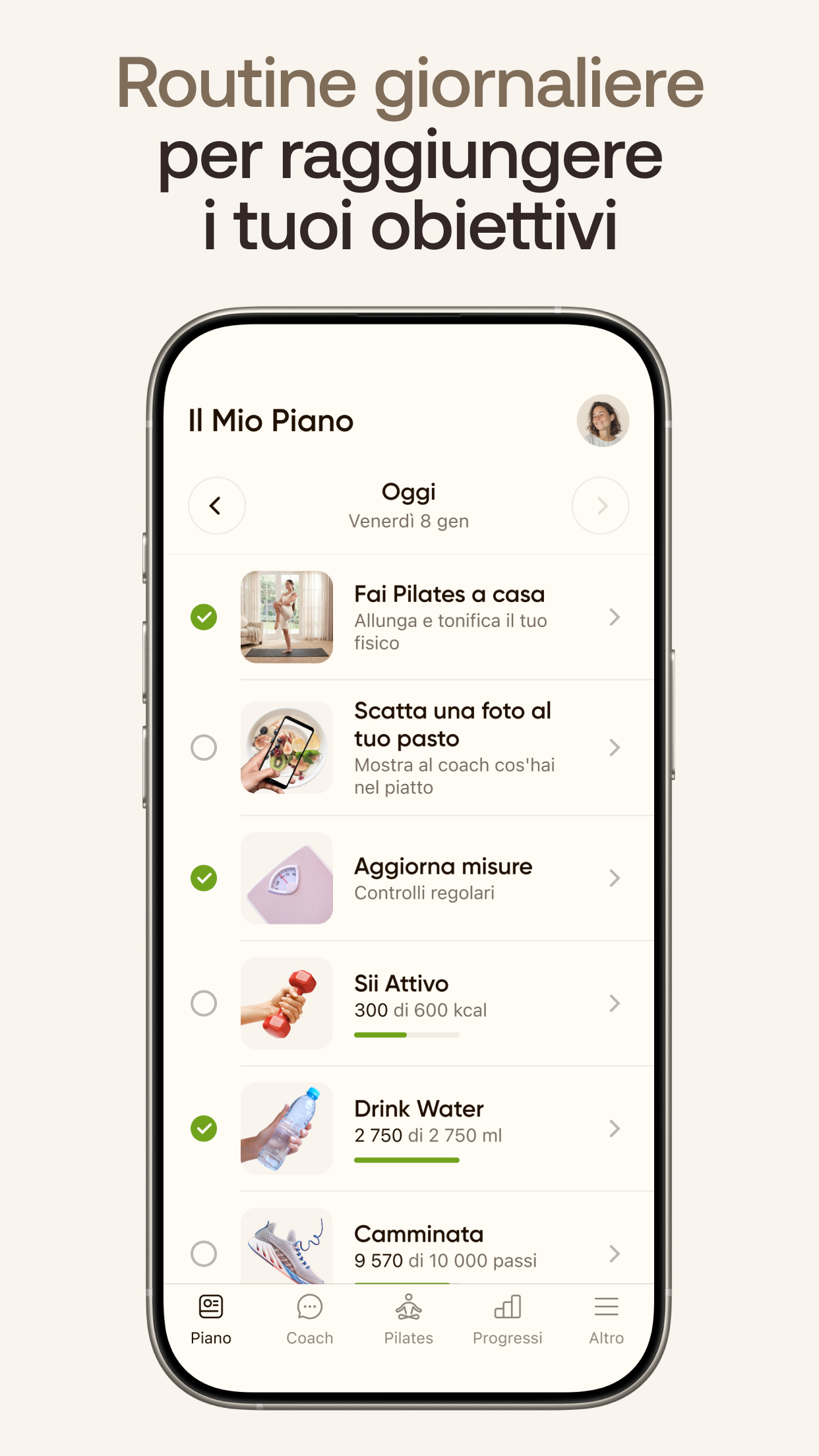 Scopri un benessere modellato attorno a te e ai tuoi obiettivi. Ottieni programmi di allenamento e alimentari per creare un cambiamento duraturo nel tuo stile di vita, senza stress. 5 MOTIVI PER INSTALLARE BetterMe: 1. Piano cucito sui tuoi obiettivi Che il tuo obiettivo sia perdere peso, aumentare la massa muscolare o mantenerti in forma, abbiamo la soluzione giusta per te. Trasforma il tuo corpo con un piano di allenamento e alimentazione adatto ai tuoi impegni, alle tue preferenze e al tuo stile di vita. 2. Tieni sotto controllo il tuo benessere Dall'attività fisica alle calorie, dall'assunzione di acqua al digiuno, i nostri tracker ti aiutano a sviluppare nuove abitudini salutari. Statistiche dettagliate ti mostrano come stai andando ogni giorno, rendendo più facile monitorare i tuoi progressi. 3. Coaching individuale Vuoi migliorare i tuoi risultati? Passa al coaching individuale per ricevere supporto e verifiche quotidiane dal tuo coach personale. Mantieniti responsabile e resta sulla buona strada per raggiungere risultati duraturi con la guida di un esperto in ogni fase del percorso. Hai bisogno di modificare il tuo piano di allenamento, ricevere consigli nutrizionali o una dose di motivazione? Scrivigli: il tuo coach ti coprirà le spalle! 4. Sfide per ogni obiettivo Mettiti alla prova con sfide guidate su allenamento e alimentazione. Qualunque sia il tuo obiettivo, riceverai un piano strutturato che ti manterrà sulla buona strada e ti porterà a risultati concreti! 5. Ottieni una visione a 360° sul tuo benessere Ottieni approfondimenti più dettagliati sul tuo percorso di fitness con il BetterMe Fitness Tracker e la Smart Scale. Tieni traccia della qualità del sonno, dei passi giornalieri, della frequenza cardiaca e della composizione corporea per capire in che modo le tue abitudini influiscono sul tuo benessere generale. BetterMe è la tua app di riferimento per vari tipi di allenamento, piani alimentari facili da seguire e consigli utili! Ecco come ti aiutiamo ad avere successo: Piano di Allenamento: Rimettiti in forma con allenamenti brevi ed efficaci. Piani Alimentari Deliziosi: goditi piatti deliziosi scelti apposta per te! Le nostre semplici videoricette rendono la cucina un gioco da ragazzi. Tracker Calorie Intuitivo: Tieni sotto controllo l'apporto calorico e dei macronutrienti giornaliero. Funzionalità Coach Personale: Non sarai mai solo in questo percorso! Puoi effettuare l'upgrade per ottenere guida e supporto professionale in ogni fase. Monitoraggio Acqua e Passi: Rimani al passo con i tuoi obiettivi quotidiani e tieni sotto controllo i tuoi livelli di idratazione e attività fisica! Allenamenti per tutti: che ami il Pilates, lo Yoga, il Calisthenics, la corsa o le camminate, abbiamo oltre 4.000 allenamenti adatti al tuo stile e al tuo livello di forma fisica! Offriamo piani di abbonamento flessibili su Google Play, così puoi scegliere quello più adatto a te. Tieni presente che gli abbonamenti si rinnovano automaticamente entro 24 ore dalla fine della prova gratuita o del periodo di abbonamento in corso. Puoi gestire o annullare l'abbonamento in qualsiasi momento tramite le impostazioni del tuo account Google Play. Monitoraggio accurato con BetterMe Fitness Tracker* Tieni d'occhio i tuoi dati di salute e fitness con il BetterMe Fitness Tracker. Questo tracker si connette facilmente all'app BetterMe, fornendoti informazioni su passi, frequenza cardiaca e sonno. BetterMe Fitness Tracker può mostrare le notifiche di chiamate e SMS in arrivo dal tuo smartphone associato, aiutandoti a rimanere connesso e informato con una semplice occhiata, a condizione che tu conceda all'app BetterMe le autorizzazioni necessarie per le chiamate o gli SMS. Termini di Utilizzo - https://betterme.world/it/terms Informativa sulla Privacy - https://betterme.world/it/privacy-policy Termini di Abbonamento - https://betterme.world/it/subscription-terms *L'app BetterMe supporta esclusivamente BetterMe Fitness Tracker.