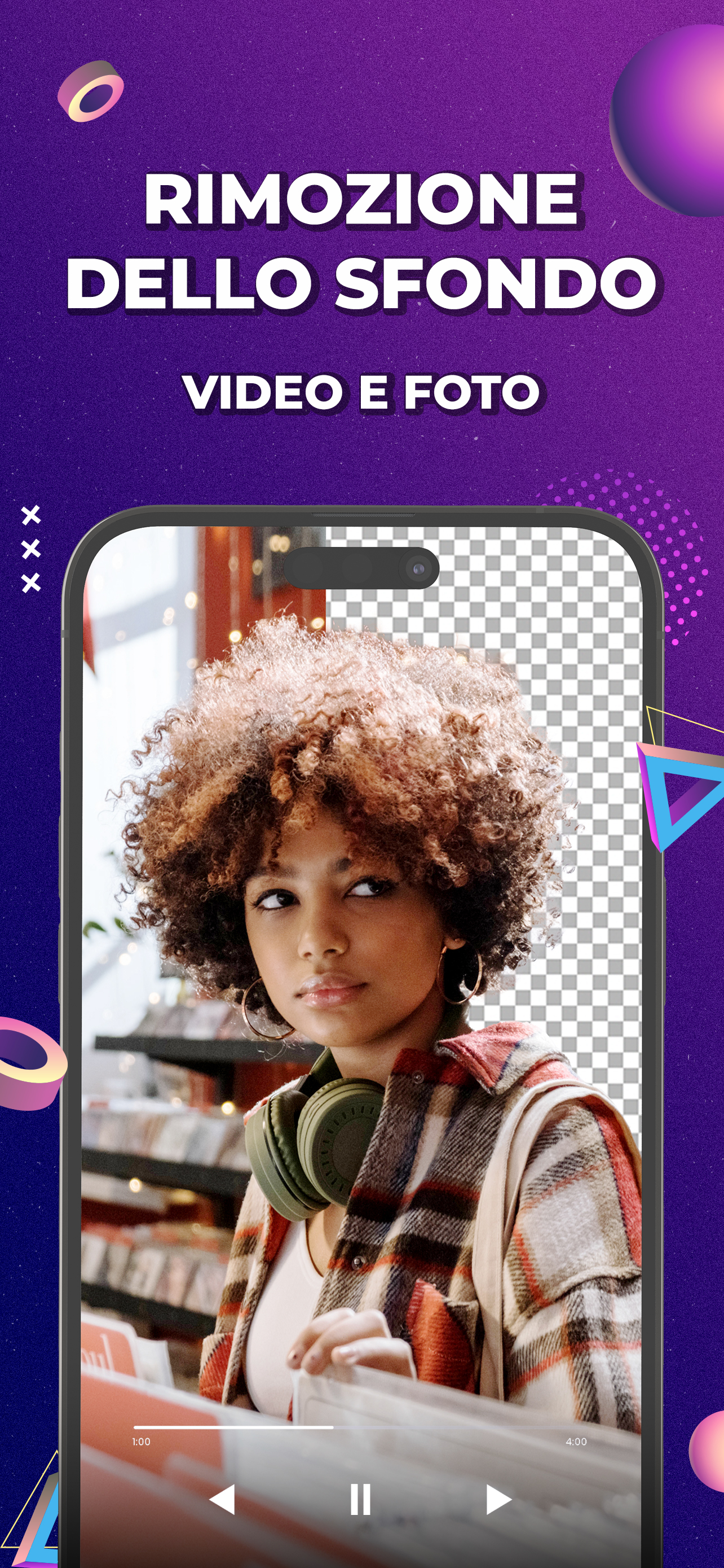 RIMUOVI LO SFONDO AUTOMATICAMENTE – rimuovi lo sfondo dalle tue foto e dai tuoi video del tutto automaticamente. Basta premere il pulsante e otterrai un ritaglio perfetto!