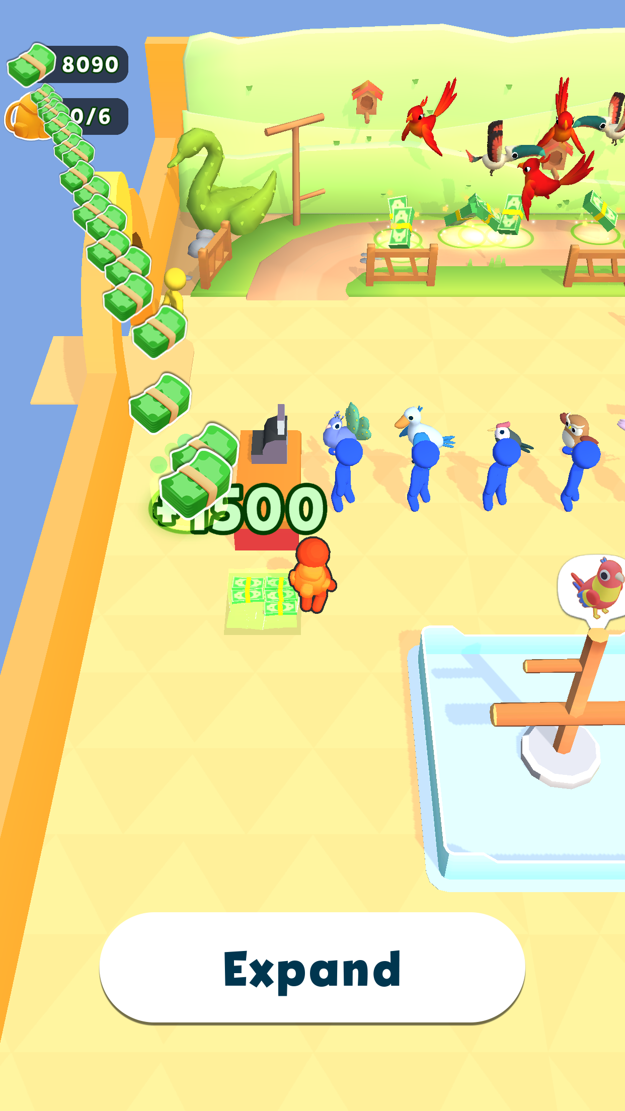 Gioco Bird Tycoon Accogliente gioco di uccelli volanti Vola, raccogli uccelli, espandi la tua voliera Gli animali misteriosi sono nella giungla e nel boschetto Investi nel tuo Bird Park ed esplora la giungla I visitatori vogliono uccelli più belli