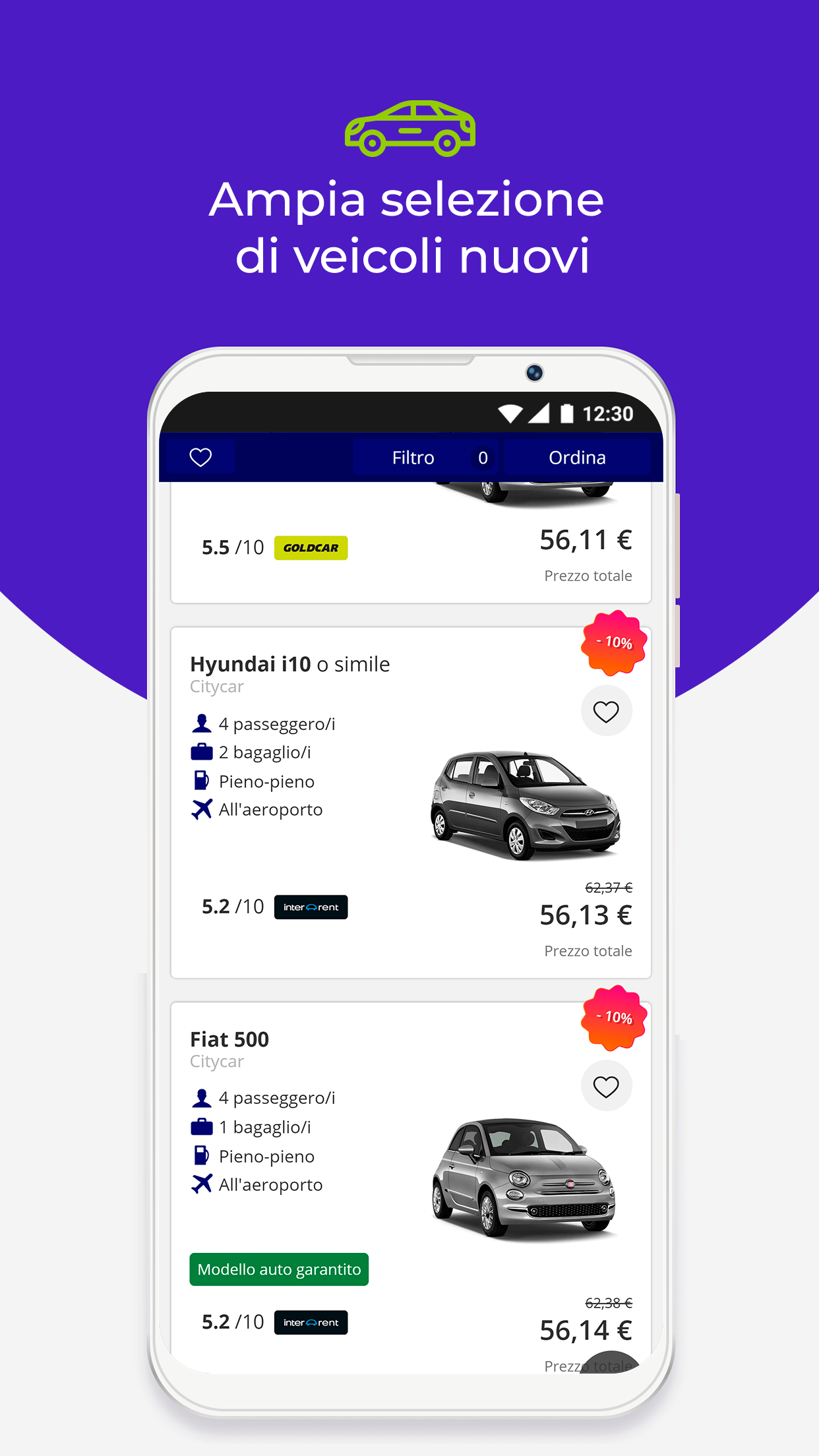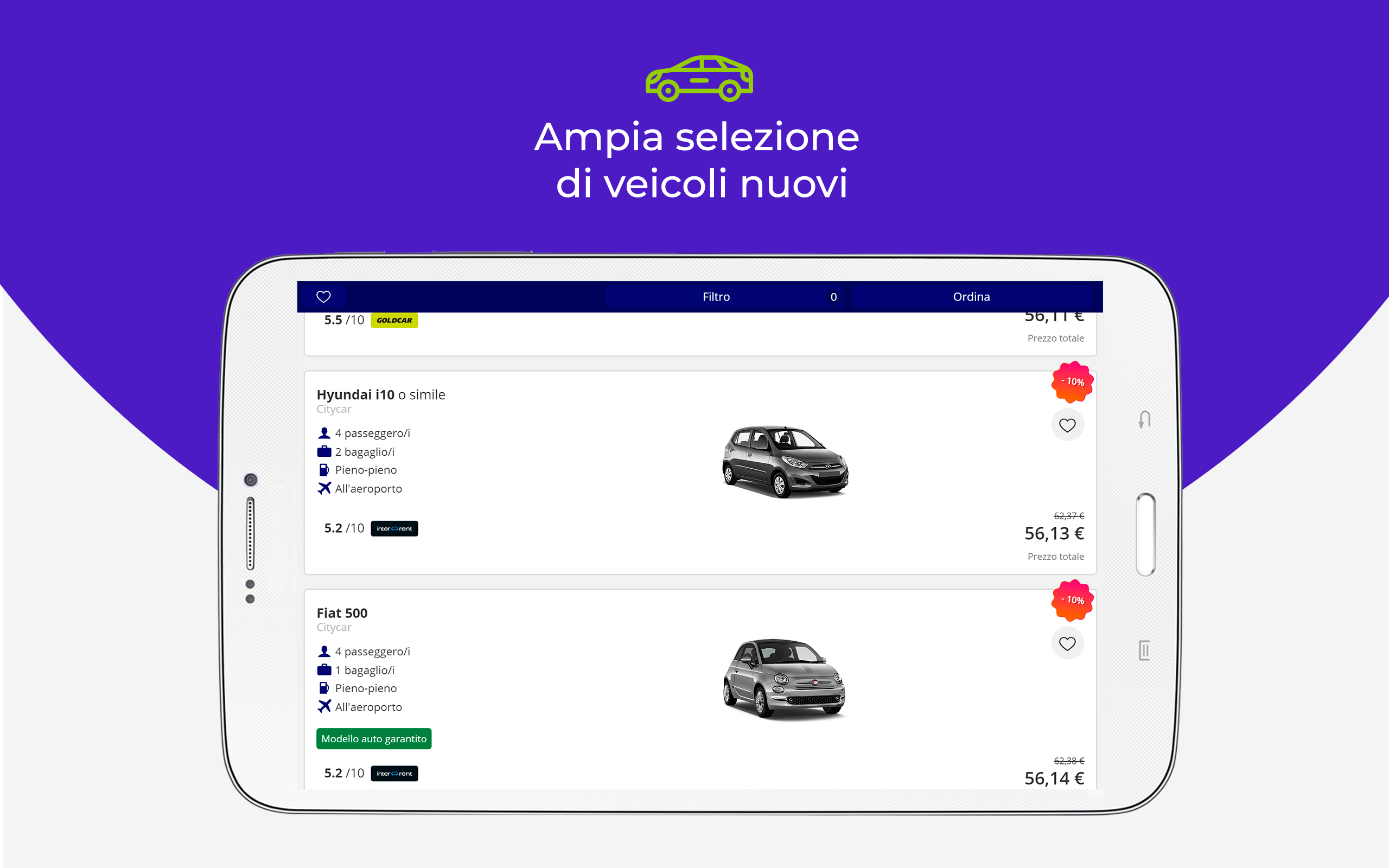 Confronta contemporaneamente le offerte tra tutte le compagnie di noleggio internazionali e locali. Grazie alla ricerca semplice, alla prenotazione veloce e alle migliori condizioni, puoi risparmiare tempo e fino al 70% sul prezzo di noleggio base.