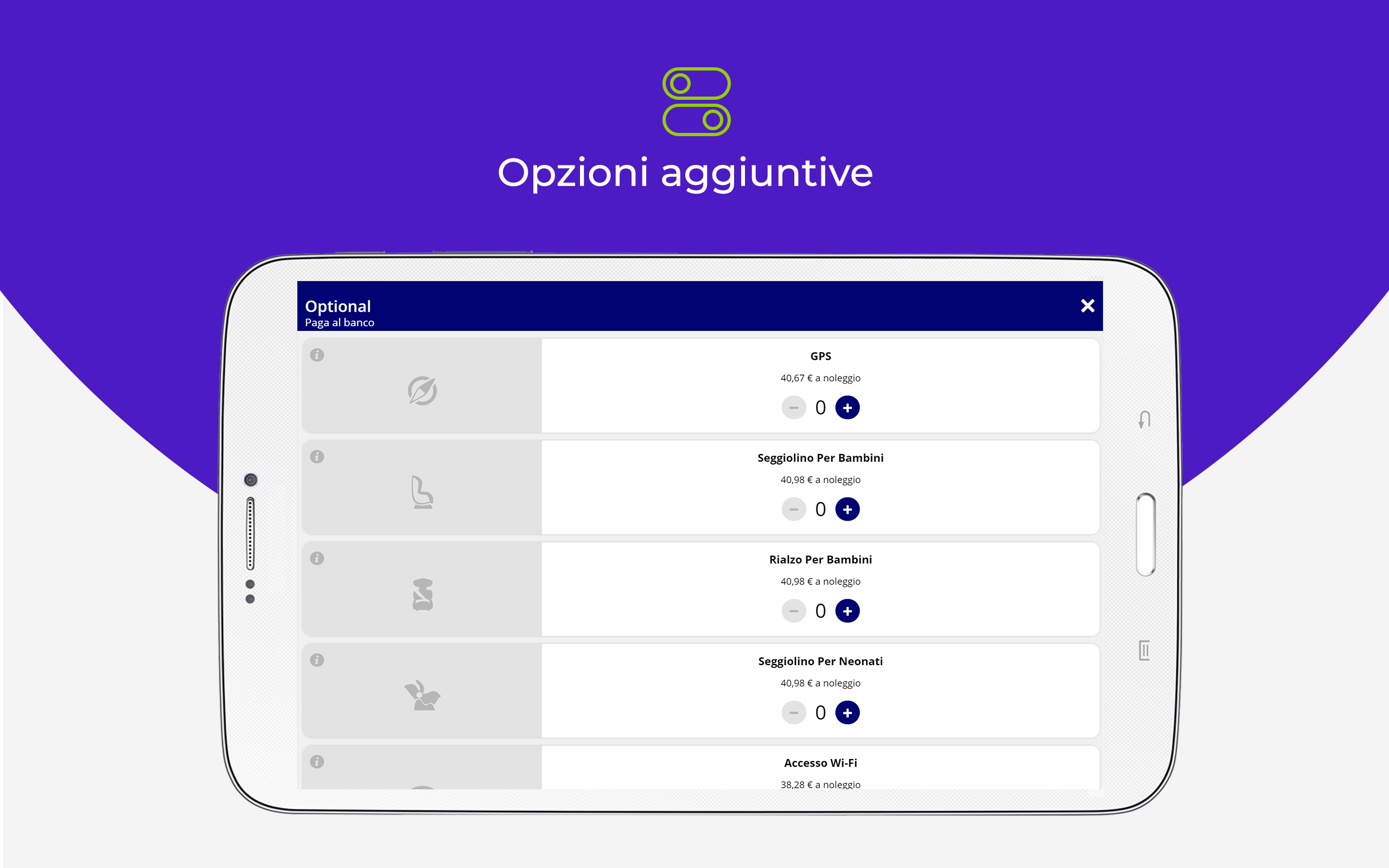 Tutti i costi del noleggio sono indicati al momento della prenotazione e nelle condizioni di noleggio.
