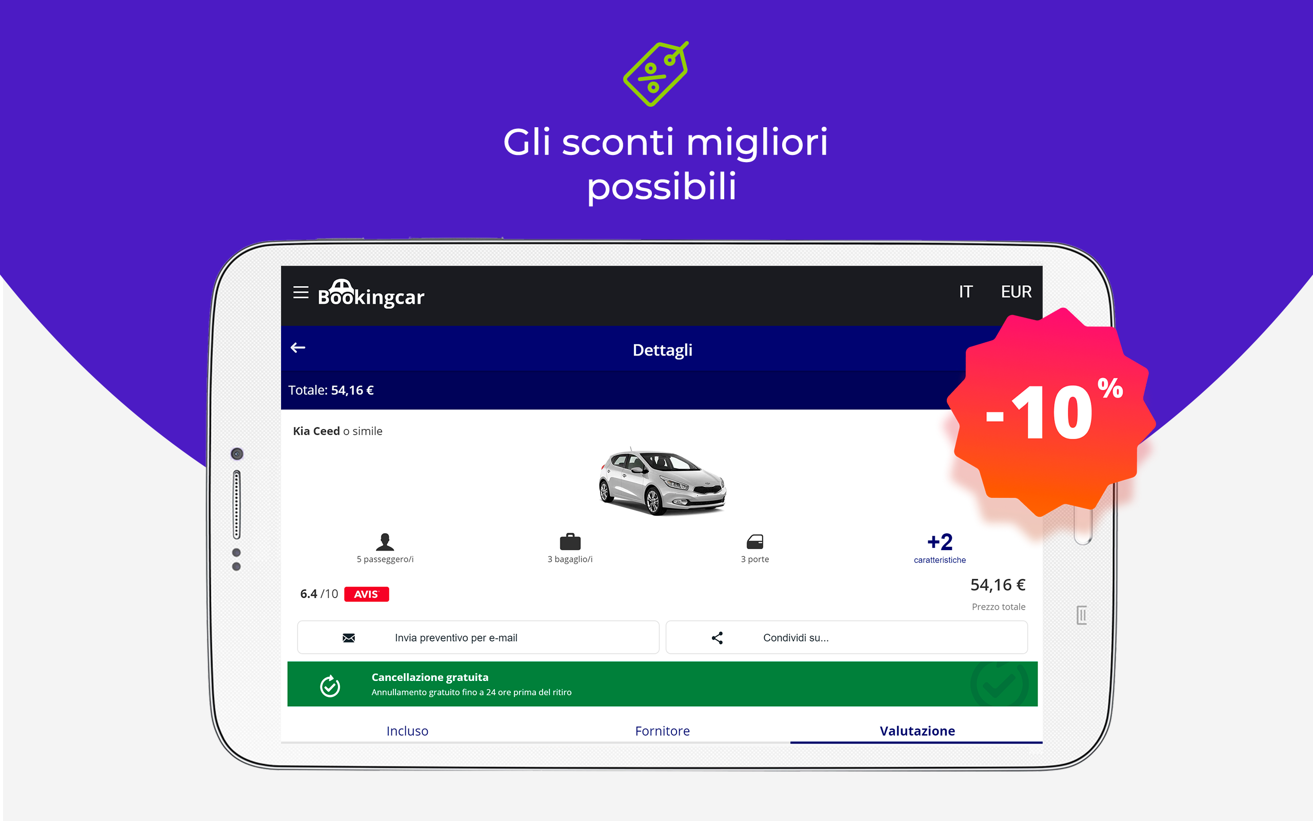 ✔ Puoi liberamente cancellare la tua prenotazione fino a 24 ore prima dell’inizio del noleggio.