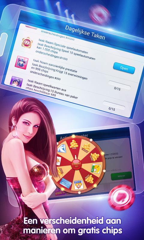 Texas Hold'em is momenteel in Europa en Amerika en 's werelds meest populaire poker spel, makkelijk te leren en moeilijk om de mogelijkheden ervan te beheersen om de wereld aan te trekken en het verzamelen van een groot aantal spelers. Regels zijn simpel, maar vol passie, maar moeten ook intelligent zijn, de pols en de geest van de wedstrijd, elite schaakspel. Boya Texas Hold'em, volledig gratis; Ondersteuning Facebook-account en Score Sign-modi; Daily Log die gave chips, spelen verschillende lijnen en volwassenen van verschillende leeftijden aan de behoeften van het spel te voldoen; Dagelijks duizenden spelers tegelijk online, met tafels snel; We zijn toegewijd aan de kwaliteit schaken te bouwen, hebben we het nastreven van hoge kwaliteit Chinese versie van "Texas Hold'em" Laat anderen jaloers op je rijkdom en word pokerpro's, om hun eigen rijkdom koninkrijk te creëren! Momenteel perfect passen op een verscheidenheid van mainstream resolutie telefoon ... "