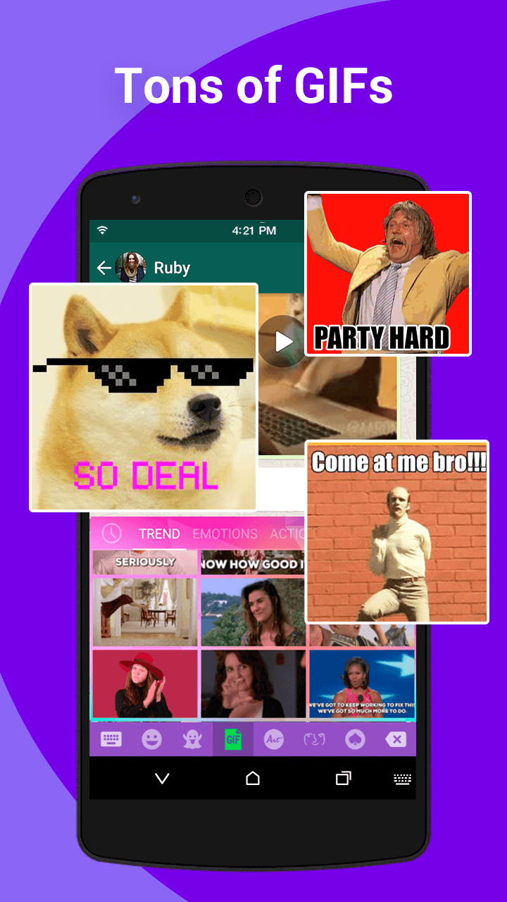 - Send thousands of free animated GIF directly from GIF keyboard