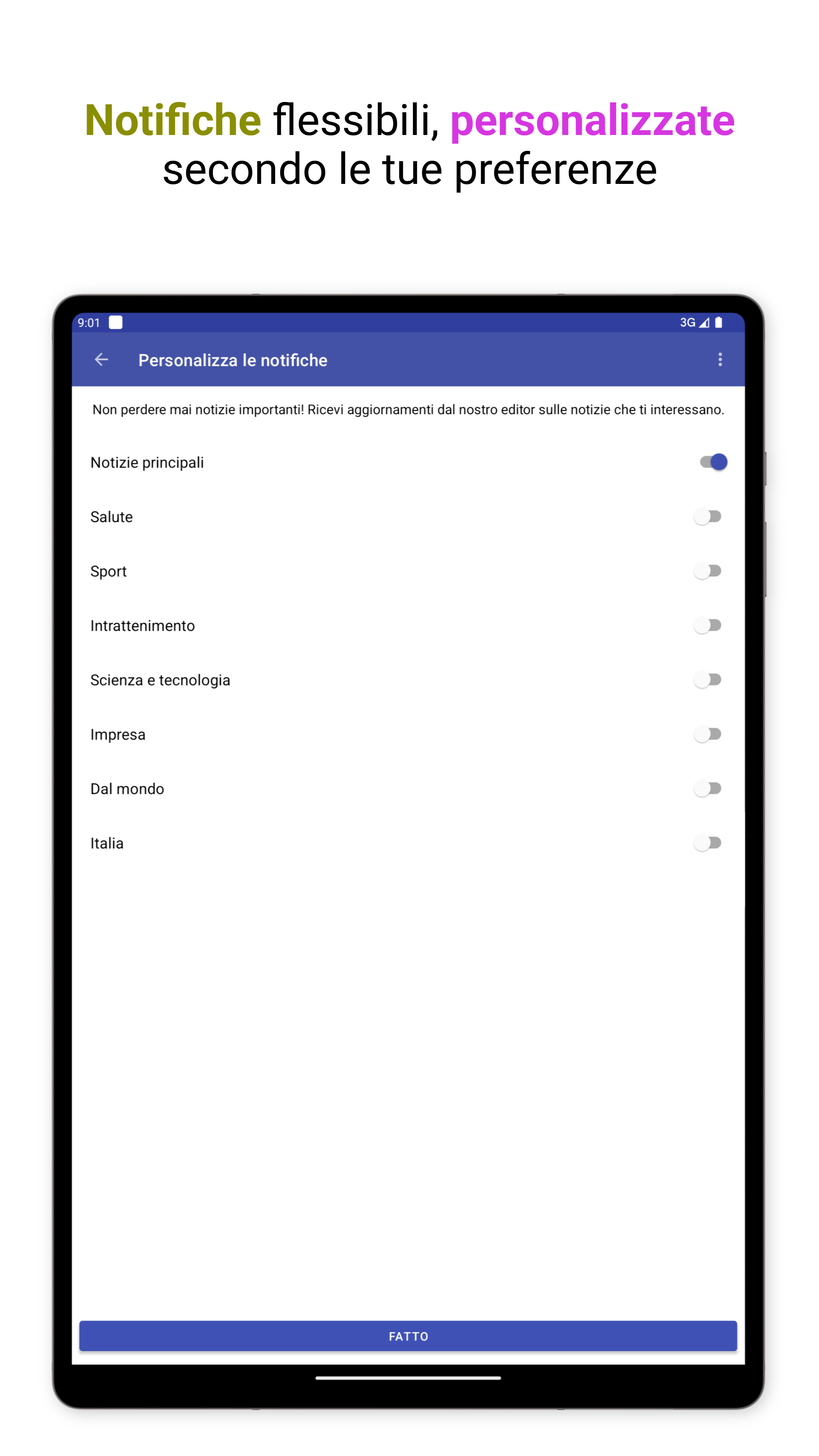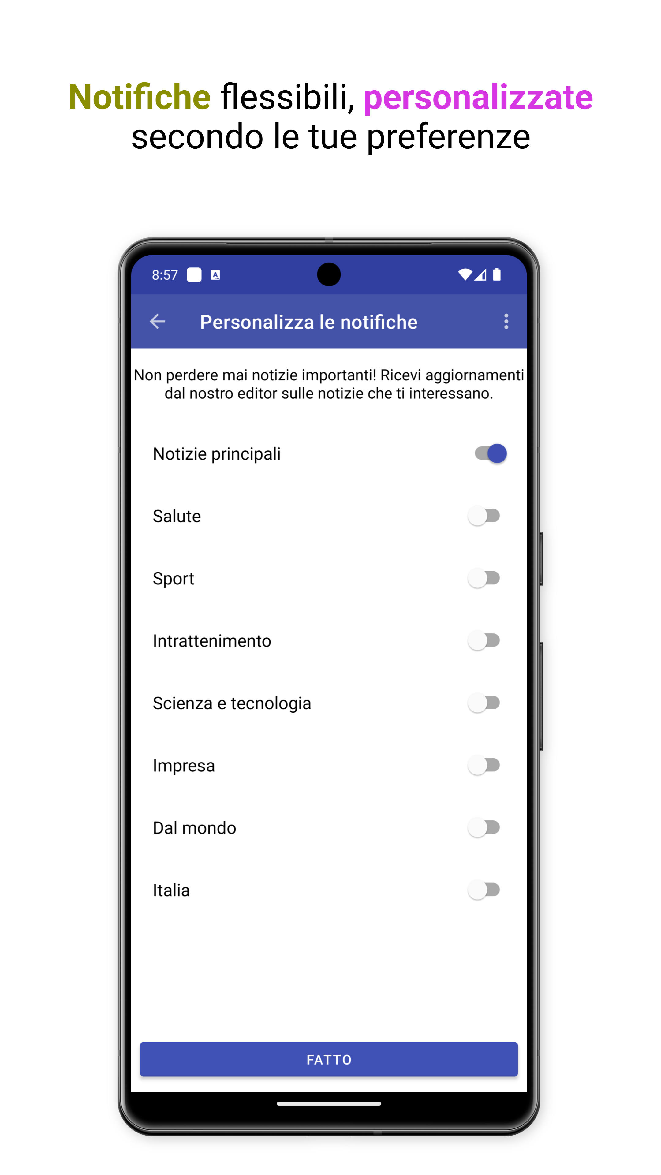 Notifiche personalizzabili per un'esperienza di notizie su misura.