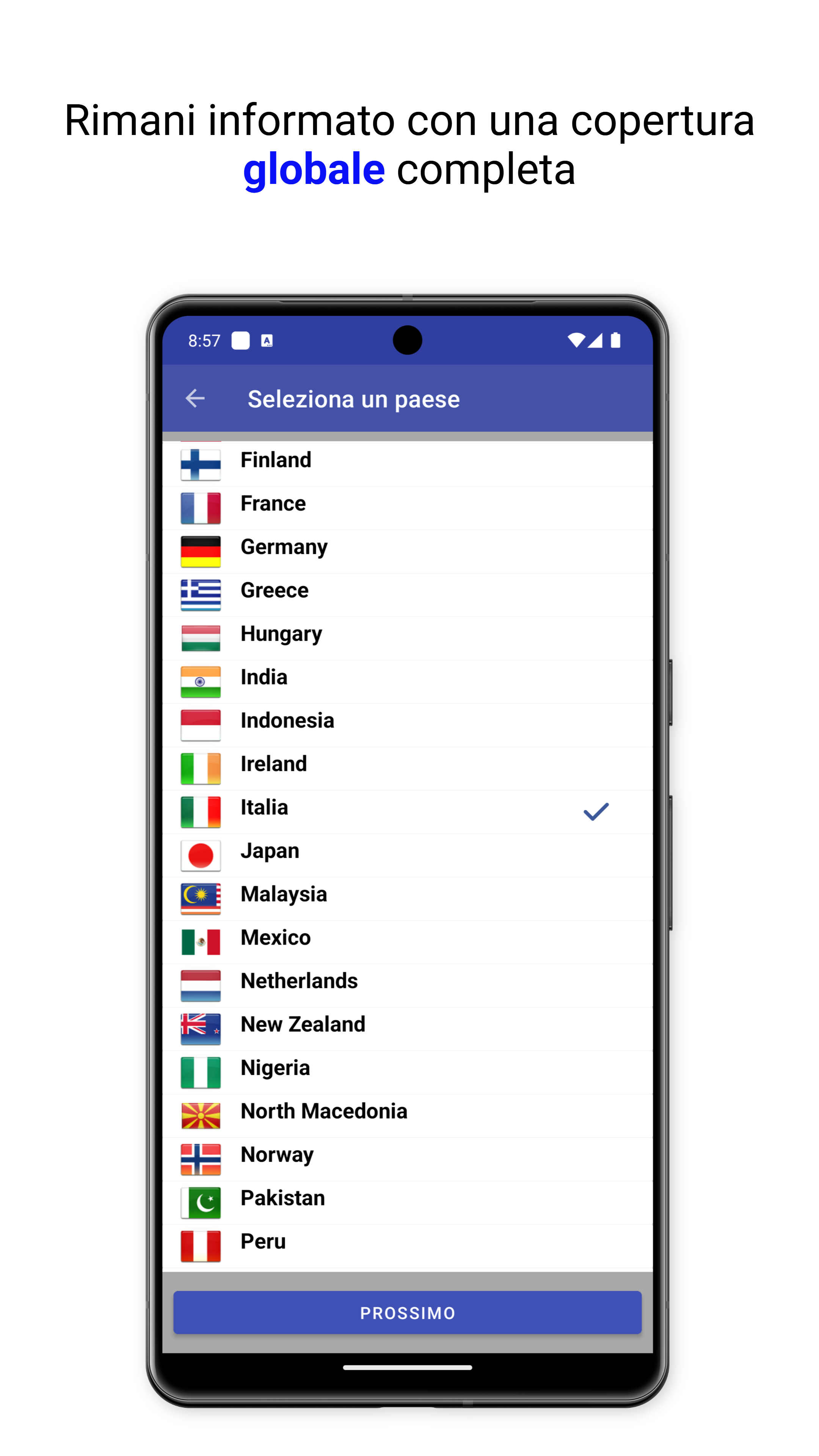 Accedi alle notizie dall’Italia e da oltre 50 paesi, con supporto per più di 30 lingue.