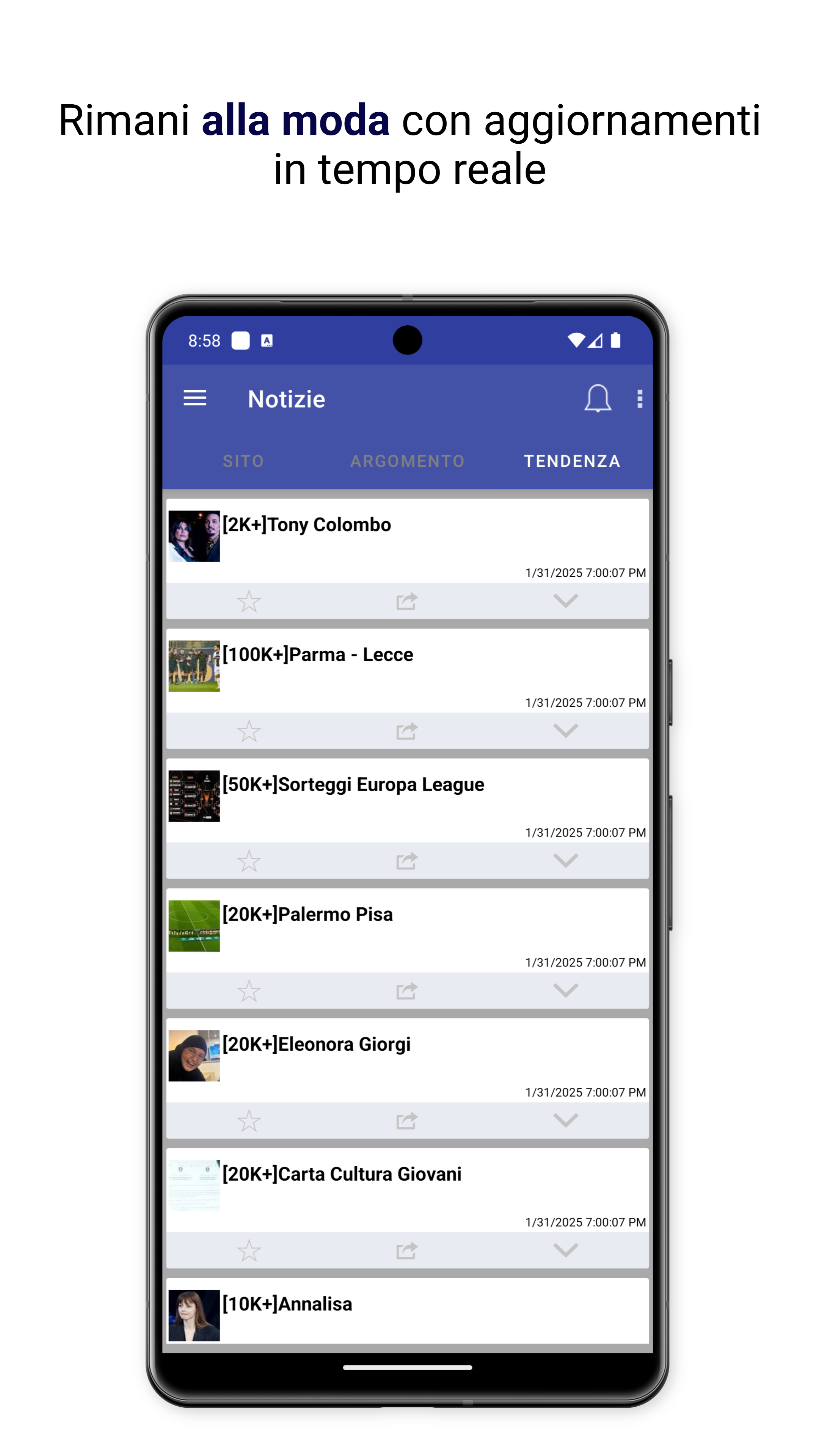 Ricevi notifiche in tempo reale per restare sempre informato sugli eventi importanti e sui temi di tendenza.