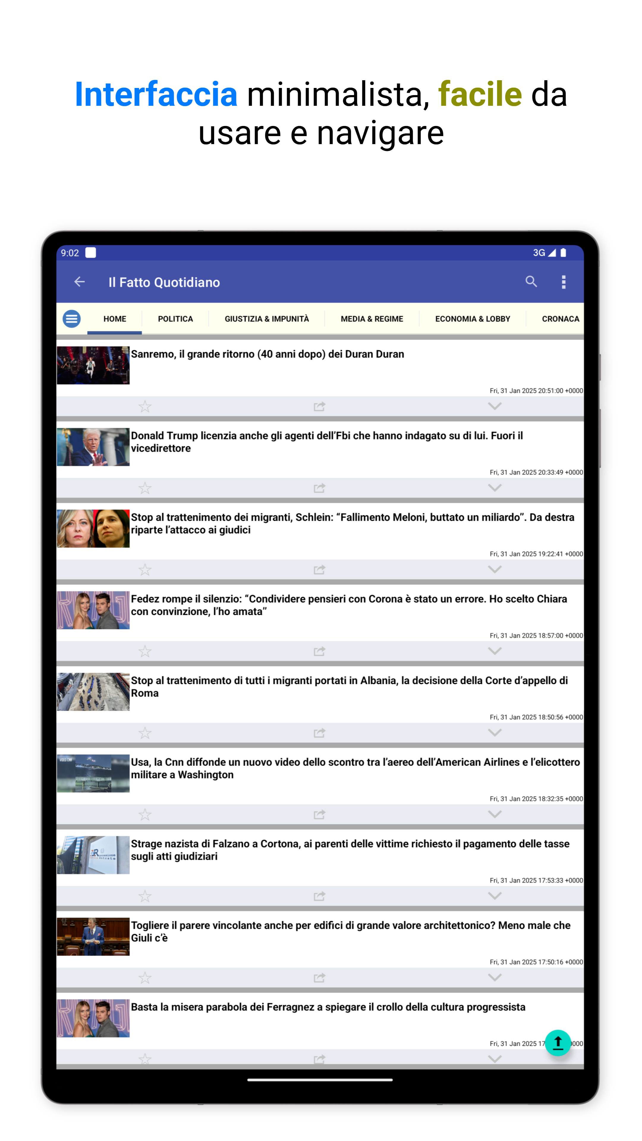 L'app ha un'interfaccia pulita e intuitiva, che rende facile e veloce la navigazione tra le notizie. Perfetta per rimanere aggiornato anche quando sei in movimento.