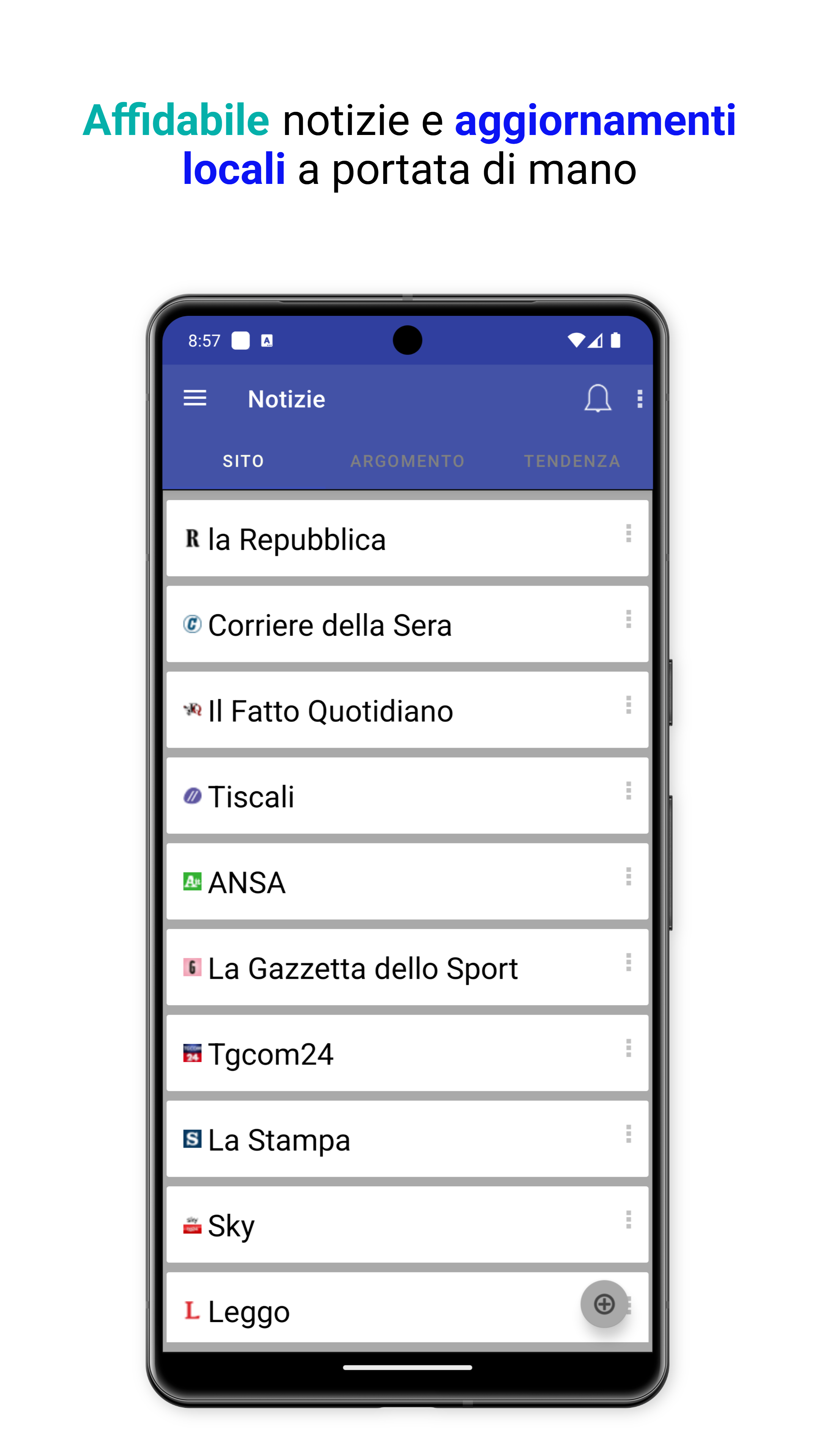 Seleziona le tue fonti di notizie preferite, come La Repubblica, Corriere della Sera, Il Fatto Quotidiano, ANSA, e altre.