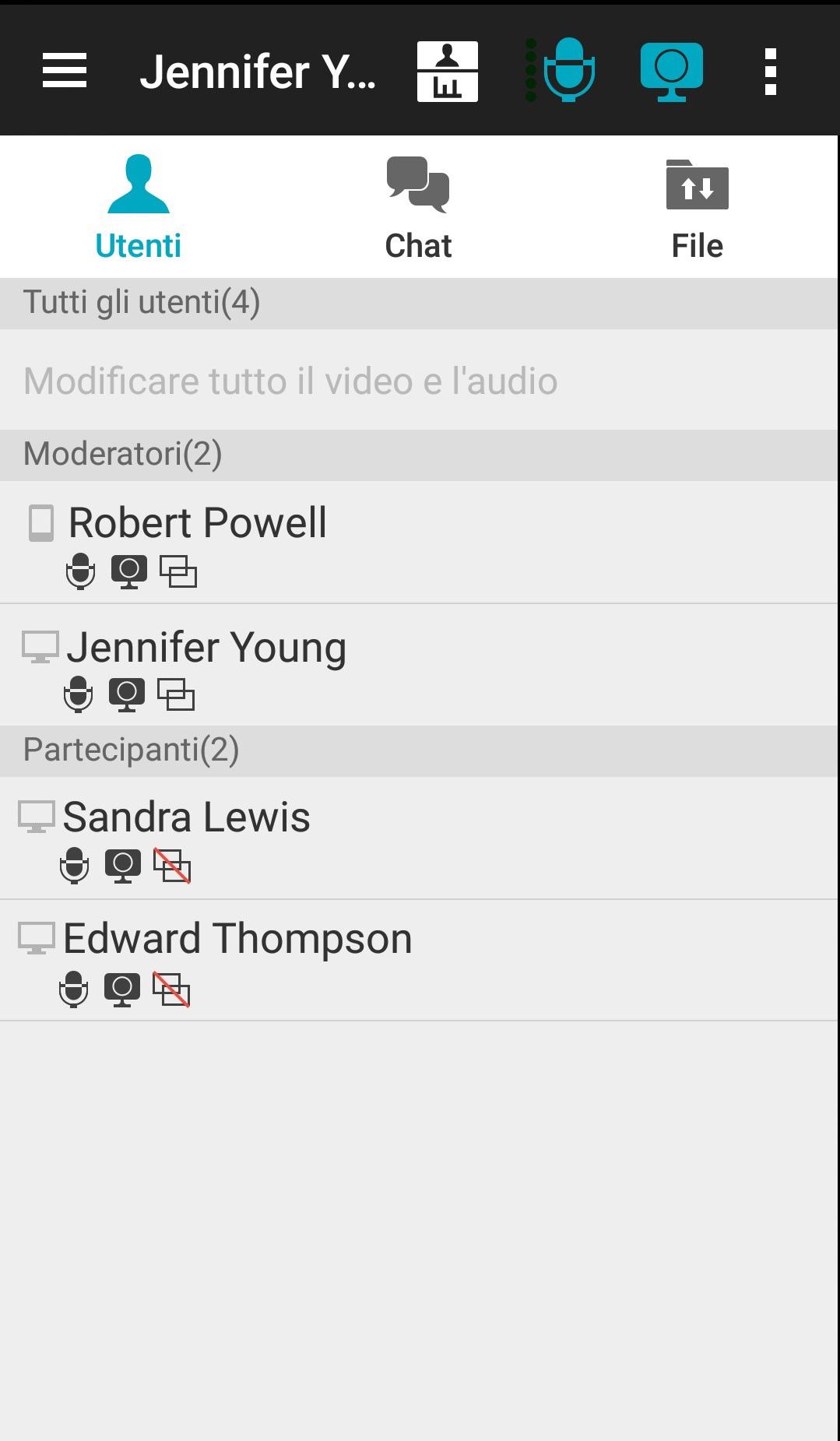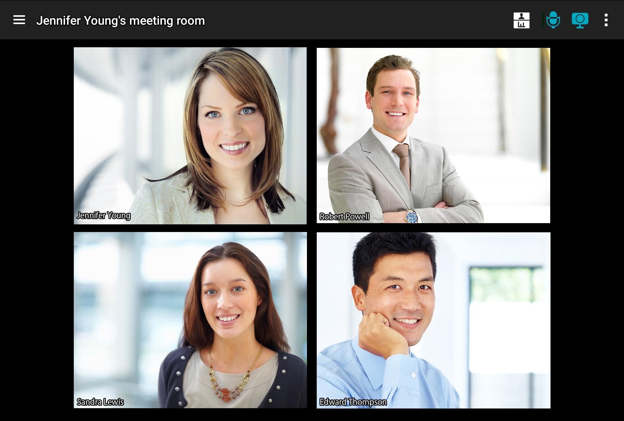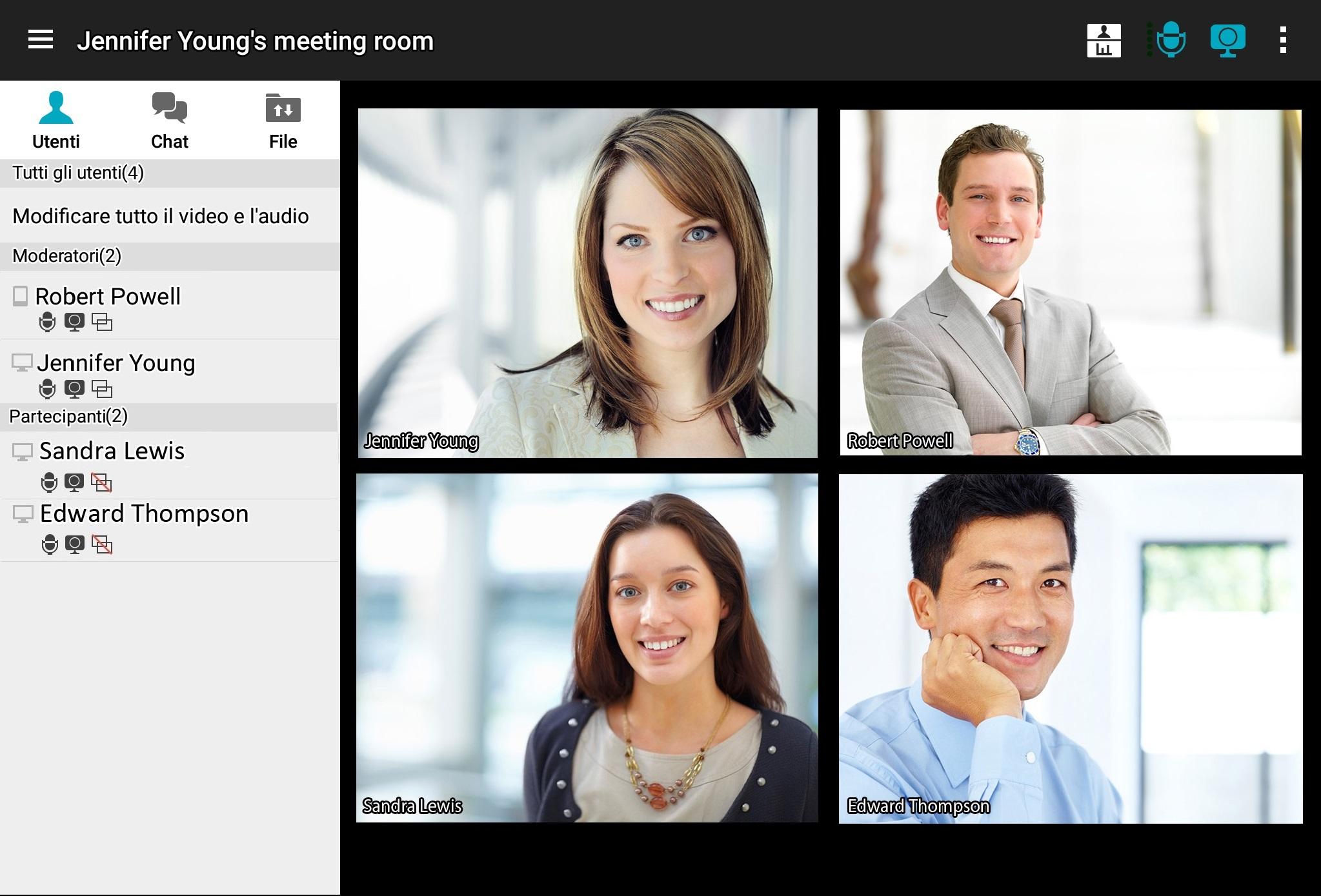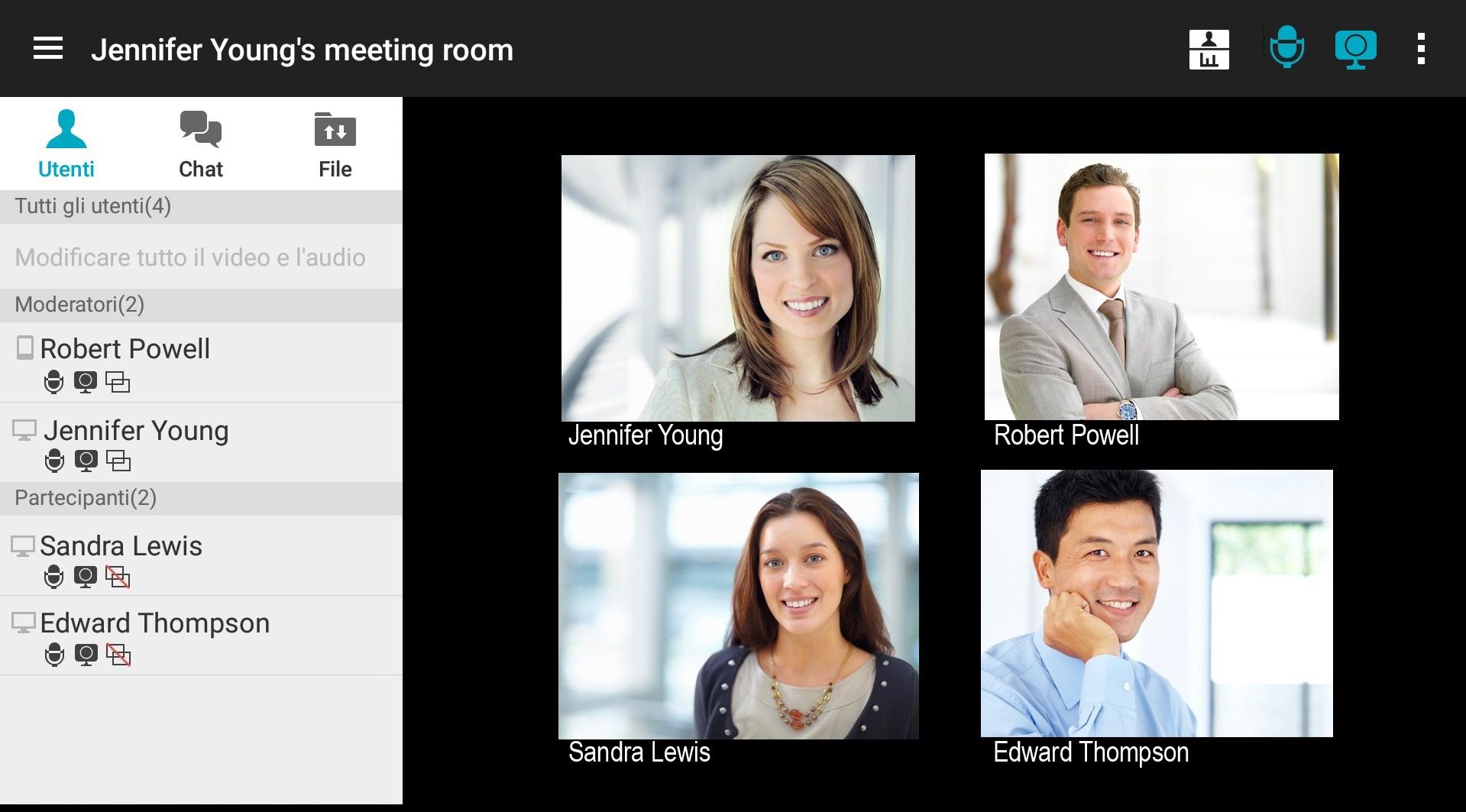 − Commutare la vista della sala riunioni (video/condivisione) a seconda delle esigenze della riunione