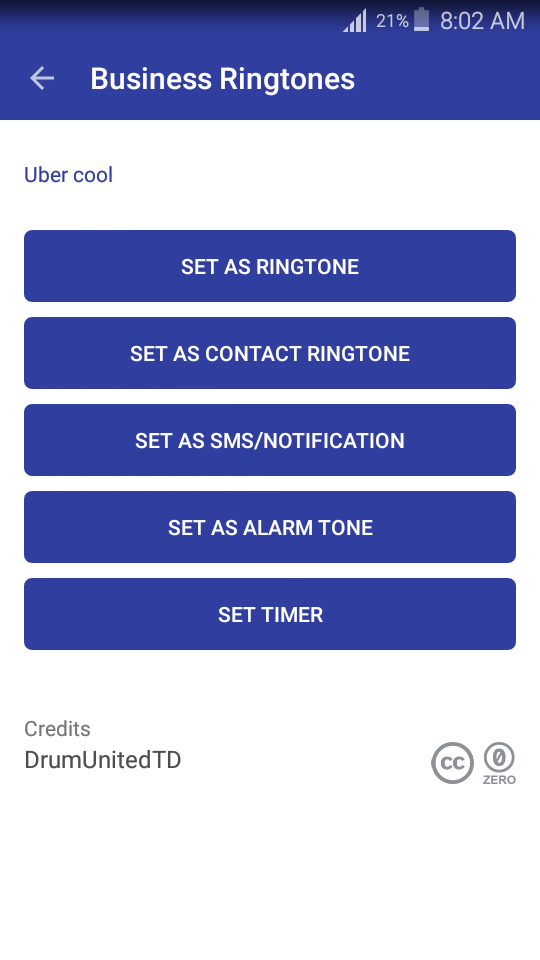 LEGAL INFO AND LICENSESounds and tones used in Business Ringtones are under Creative Commons license (CC0 1.0, CC BY 2.0, CC BY 3.0), credited in the app, where appropriate. For any questions or concerns regarding license, please contact us at