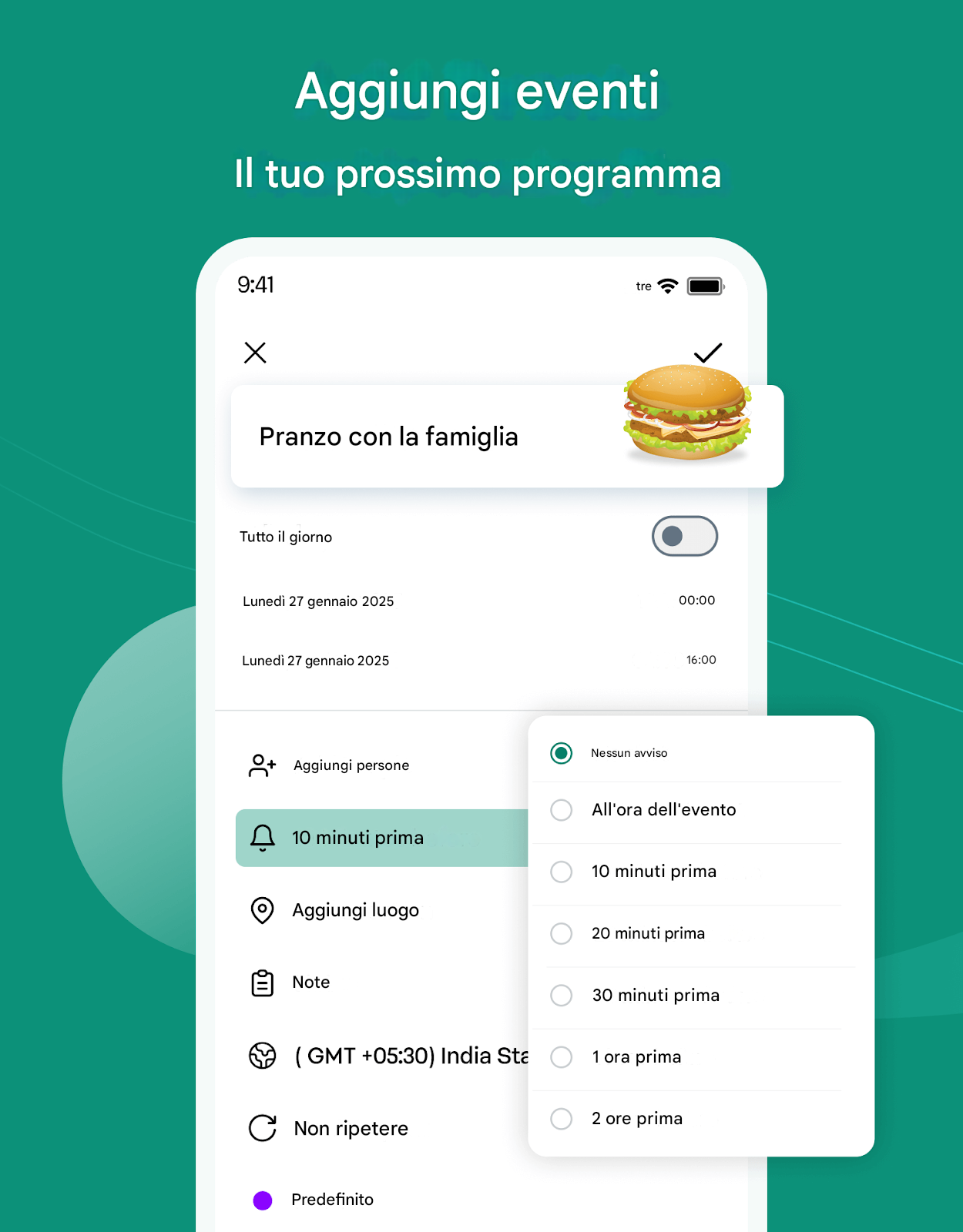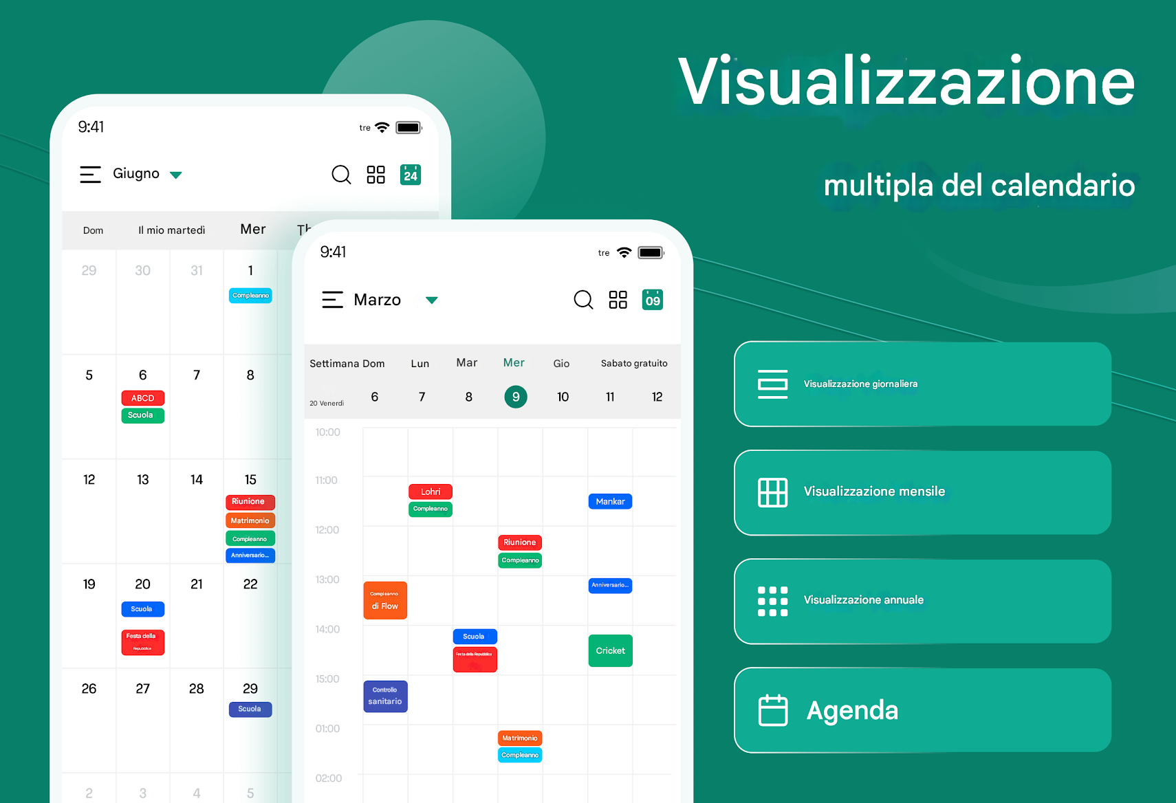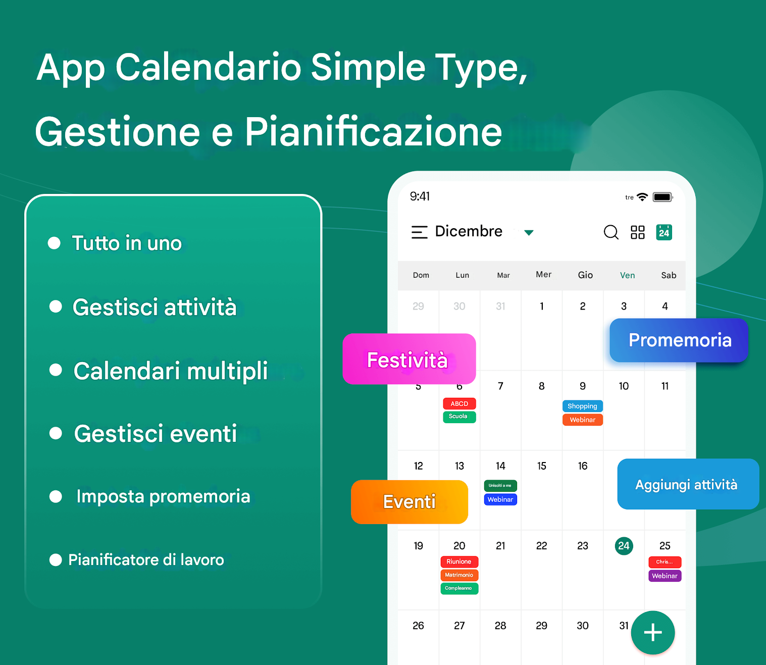 Presentazione dell'App Calendario definitiva! 📅 Rimani organizzato, produttivo e non perdere mai un momento speciale con la nostra App Calendario all-in-one. Che tu stia gestendo il lavoro, pianificando eventi personali o monitorando le festività nazionali, la nostra app è la compagna perfetta! Con potenti funzionalità come promemoria, gestione delle attività e visualizzazioni personalizzabili (anno, mese, giorno, settimana), avrai il controllo completo sulla tua agenda. Personalizza facilmente la tua esperienza di pianificazione e rimani sempre aggiornato con notifiche e monitoraggio delle festività. Il Calendario mostra un'aftercall che ti consente di identificare le chiamate in arrivo non appena si verificano, così puoi gestire le tue attività e impostare promemoria subito dopo la chiamata in arrivo. Questo consente agli utenti di tenere traccia istantaneamente di eventi e date subito dopo le chiamate. La nostra app utilizza l'autorizzazione FOREGROUND_SERVICE_PHONE_CALL per avviare immediatamente un'attività in primo piano al termine di una telefonata. Questa attività consente agli utenti di creare promemoria, aggiungere eventi al calendario e gestire le attività in base al contesto della chiamata. La funzionalità è essenziale per migliorare la produttività degli utenti e deve iniziare immediatamente al termine della chiamata per mantenere il contesto. Questa attività non può essere messa in pausa o ritardata. 📅 Calendario: la chiave per la produttività => Il Calendario è uno strumento utile per gestire la tua agenda. Ti tiene aggiornato su riunioni, scadenze e appuntamenti. I calendari forniscono una panoramica della tua agenda giornaliera e ti assicurano di non dimenticare mai eventi importanti come festività, ferie e l'agenda del 2025. Funzionalità principali:Calendario semplice 🌍 Selezione della lingua Scegli tra diverse lingue e personalizza l'esperienza del calendario in base alle tue preferenze. 🎉 Festività nazionali Seleziona il tuo Paese e visualizza immediatamente le festività nazionali più importanti! Rimani aggiornato e non dimenticare mai più quelle date importanti. ⏰ Imposta promemoria per tutto! Non perdere mai un'attività, un evento o una data importante con il nostro sistema di promemoria personalizzabile. Imposta notifiche per promemoria, attività ed eventi in qualsiasi momento: puntuali, 5 minuti prima, 10 minuti prima e altro ancora! 📝 Aggiungi attività ed eventi Aggiungi facilmente attività, eventi e persino date speciali come compleanni e anniversari! Tieni tutto in un unico posto e imposta promemoria per essere sempre pronto. 🔍 Cerca eventi Trova e cerca rapidamente i tuoi eventi, attività o promemoria con la nostra potente funzione di ricerca. Non dovrai più scorrere! 📅 Personalizza la tua vista Scegli tra diverse viste quella più adatta al tuo stile di pianificazione: Vista annuale, Vista mensile, Vista di 3 giorni, Vista settimanale o Vista giornaliera. Trova il modo perfetto per visualizzare i tuoi piani! 🎉 Aggiungi festività Segna le tue festività personali, eventi speciali o giorni di ferie e tieni tutto sotto controllo! 🌈 Cambia temi Rendi la tua app calendario davvero tua personalizzando il tema! Passa da temi chiari a temi scuri, a seconda del tuo umore. 🎂 Tieni traccia di compleanni e anniversari Non dimenticare mai più compleanni o anniversari importanti! Aggiungi queste date speciali e ricevi promemoria puntuali per dimostrare il tuo affetto e la tua gratitudine. 🕒 Seleziona il formato dell'ora Scegli tra il formato a 12 o 24 ore in base alle tue preferenze per una facile visualizzazione! 📋 Filtra agenda Usa il filtro per visualizzare solo eventi, attività o promemoria specifici, mantenendo il tuo calendario ordinato e organizzato come preferisci.