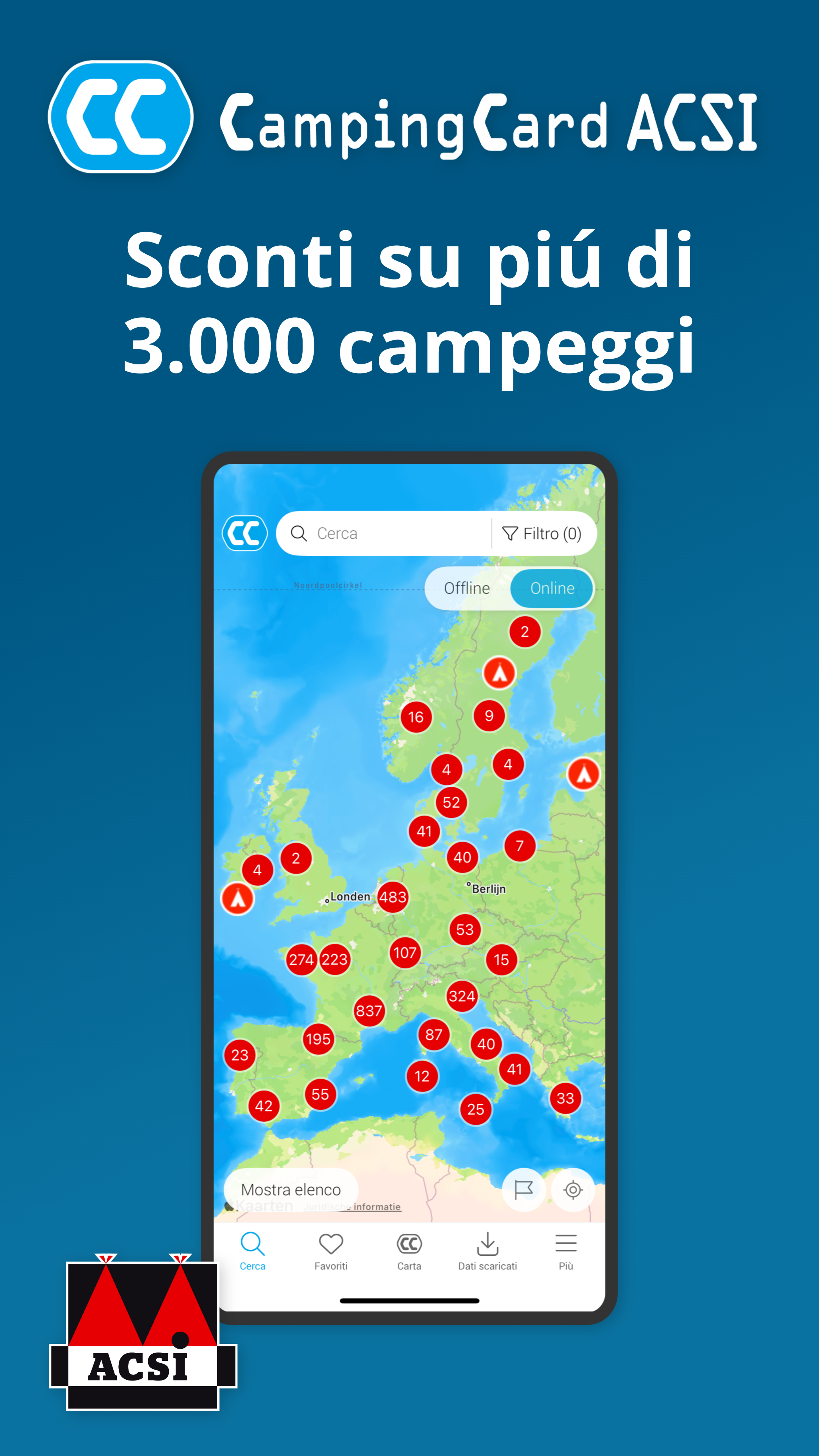 Vuoi campeggiare a prezzi convenienti in bassa stagione? Con la carta sconto CampingCard ACSI puoi risparmiare fino al 60% sul pernottamento grazie a tariffe fisse e basse. Puoi soggiornare a una tariffa di 13, 15, 17, 19, 21, 23, 25 o 27 euro a notte. E i (nipoti) bambini (fino a 3 bambini fino a 5 anni) soggiornano gratuitamente in oltre 400 campeggi. Nessuna sorpresa, solo campeggio economico. E la parte migliore? Puoi acquistare la carta sconto digitale CampingCard ACSI direttamente nell’app, così puoi usufruire dei vantaggi ovunque e in qualsiasi momento. Che tu abbia una tenda, un caravan pieghevole, una roulotte o un camper, l’app rende facile trovare campeggi che soddisfino le tue esigenze. Per i viaggiatori in camper, l’app include più di 9.000 aree di sosta. Hai già una carta sconto CampingCard ACSI in formato cartaceo? Puoi allora utilizzare l’app per trovare i campeggi aderenti o le aree di sosta adatte ai camper. Con l’app CampingCard ACSI puoi cercare tra oltre 150 servizi, come piscina, WiFi, accoglienza per animali domestici, area giochi, posizione sul mare, spa e molto altro, per trovare il campeggio che meglio si adatta alle tue esigenze di vacanza. Puoi usare l’app per prenotare direttamente o salvare i tuoi campeggi preferiti per prenotarli in seguito. Puoi trovare campeggi in tutta Europa nell’app CampingCard ACSI. Scopri campeggi in paesi come: • Francia • Italia • Croazia • Paesi Bassi • Austria • Spagna • Germania • Regno Unito Perfetto per i viaggiatori in camper Viaggi spesso in camper? Le informazioni sui campeggi sono arricchite con dettagli su oltre 9.000 aree di sosta, tutte ispezionate da veri viaggiatori in camper. Inoltre, puoi utilizzare le informazioni acquistate su tre dispositivi contemporaneamente, così avrai sempre accesso ai tuoi dati. Utilizzo offline Una volta scaricata l’app, puoi utilizzarla anche offline. Questo è particolarmente utile quando sei in viaggio o hai una connessione internet limitata. Puoi usare l’app su tre dispositivi contemporaneamente. Recensioni dei campeggiatori Vuoi sapere cosa pensano gli altri campeggiatori? Nell’app puoi leggere le recensioni di altri utenti e scrivere la tua recensione dettagliata. Oltre 60 anni di esperienza Tutti i campeggi nell’app CampingCard ACSI sono ispezionati ogni anno da ACSI. ACSI ha oltre 60 anni di esperienza nel settore del campeggio. La app raccoglie i dati tecnici con i quali gli sviluppatori possono migliorarla. Attenzione: utilizzando la funzione di geolocalizzazione (GPS) la batteria del dispositivo si scarica più in fretta.