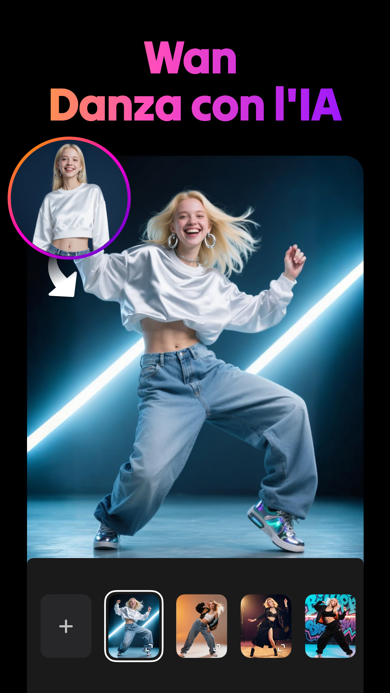 Crea animazioni del corpo con l'animatore fotografico AI di SelfyzAI. Fai