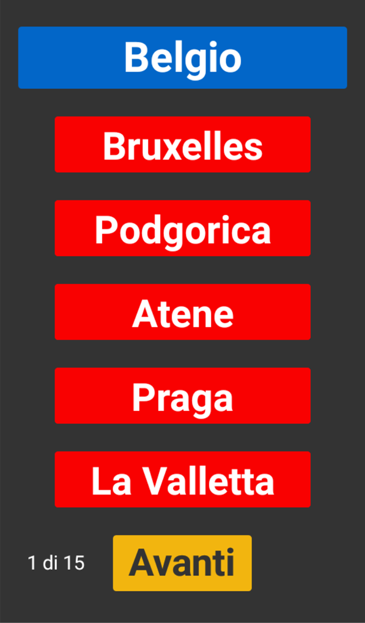 Individua la capitale di ciascuno stato europeo, selezionandola fra quelle proposte. Del test fanno parte anche stati il cui territorio è in parte europeo o la cui storia e cultura sono strettamente legate all'Europa.