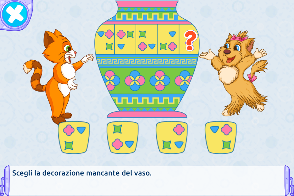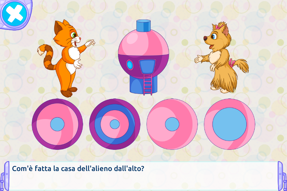 Una storia interattiva con compiti educativi e mini-giochi per bambini di 6-9 anni. I due protagonisti, Cane e Gatto, cercano la Fatina perduta, viaggiano su mondi diversi con la loro macchina magica. Nei loro viaggi, incontrano gnomi, elfi, draghi delle grotte, alieni di un lontano pianeta e scendono nel profondo dell’oceano. La trama si alterna a compiti di logica adatti a bambini in età prescolare e delle scuole elementari. Per aiutare i personaggi a proseguire nella storia, il bambino risolve compiti e allena l’attenzione, la memoria, la logica, l’intelligenza spaziale e altre funzioni cerebrali. La storia è composta di 5 capitoli. C’è anche un elenco di 14 mini-giochi, ognuno con 4 livelli di difficoltà. L’applicazione è stata creata da una psicologa infantile e insegnante. Compiti di logica nella storia: individua uno schema nella sequenza, labirinti, puzzle, indovina con quale pezzo di carta era stata fatta la busta, posiziona i fiori in un mazzo seguendo le istruzioni, sudoku e altri. Comiti che allenano l’attenzione: scegli la giusta ombra per il drago, trova due stelle marine simili, trova il pesce spaiato, scegli il giusto pezzo di ricambio, conta i numeri in ordine crescente/decrescente, trova tutti gli alieni e altri. Compiti per allenare la memoria: memorizza le posizioni delle stelle sull’antica mappa, ricorda cos’hanno portato con sé gli amici, ricorda il frutto preferito di ogni elfo e altri. L’applicazione è disponibile in 15 lingue: inglese, russo, tedesco, francese, spagnolo, portoghese, italiano, olandese, giapponese, svedese, danese, norvegese, polacco, ceco e turco.