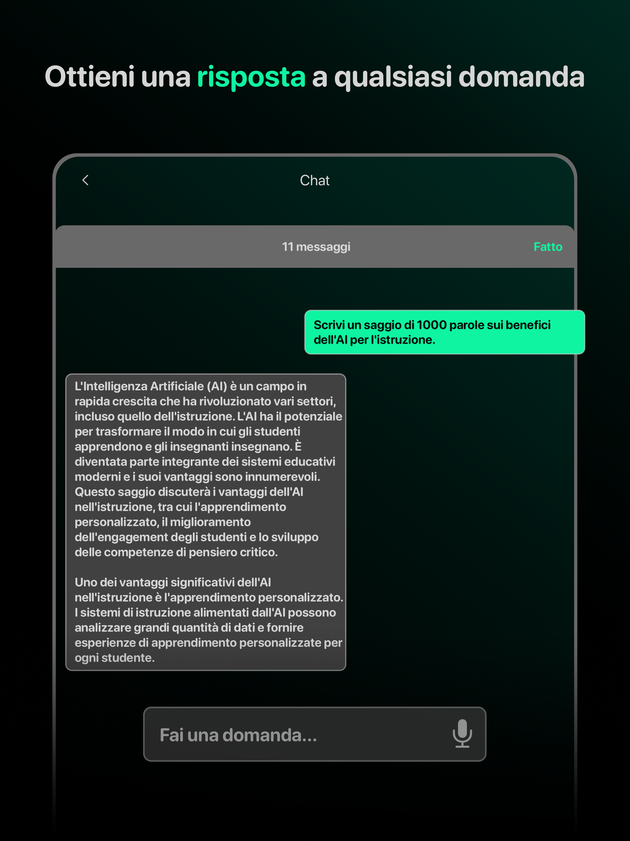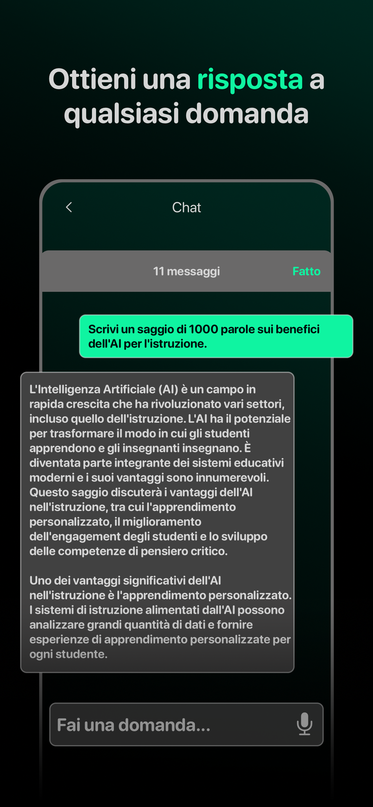 - Capacità di dialogare (l'AI ricorda l'intera cronologia della chat)