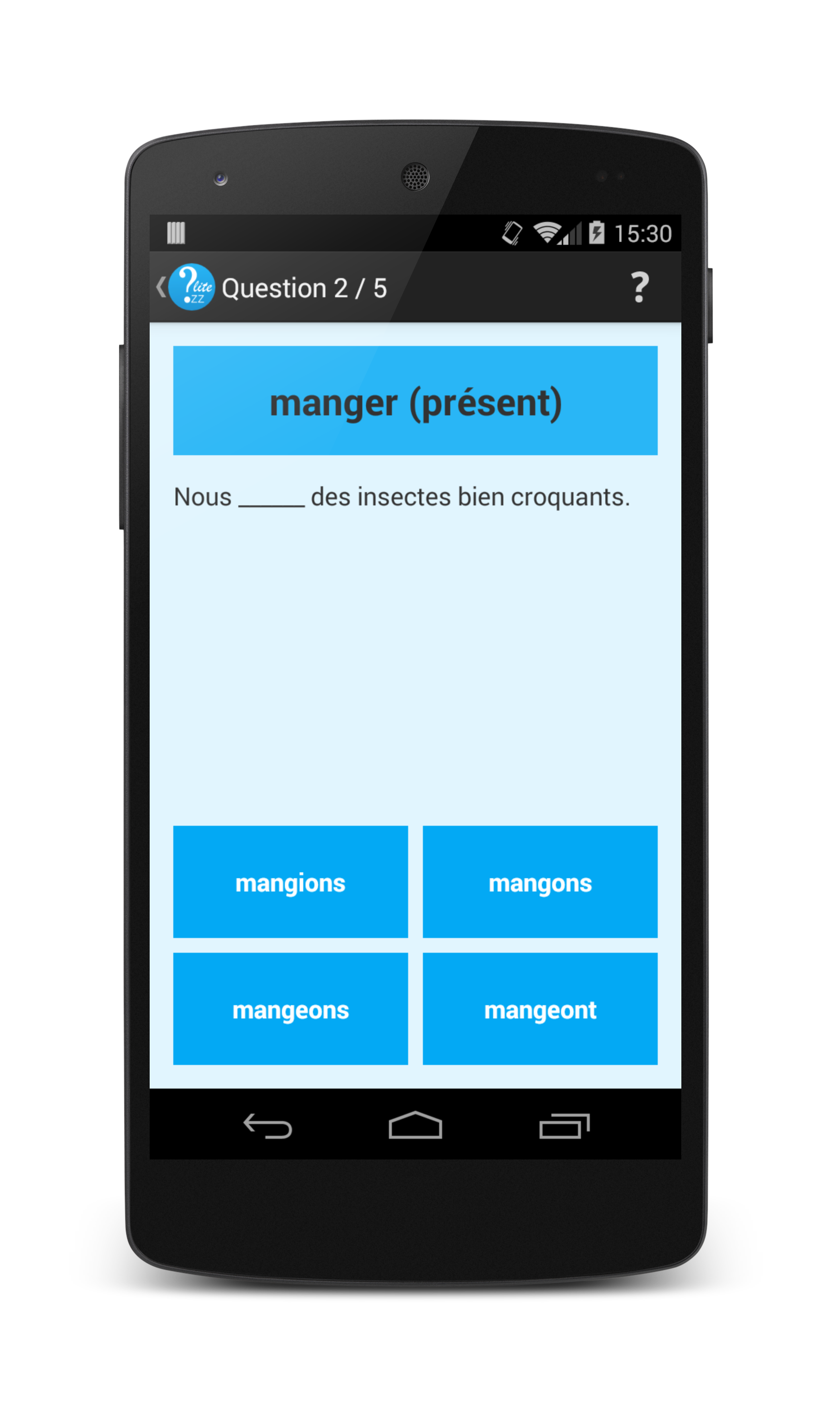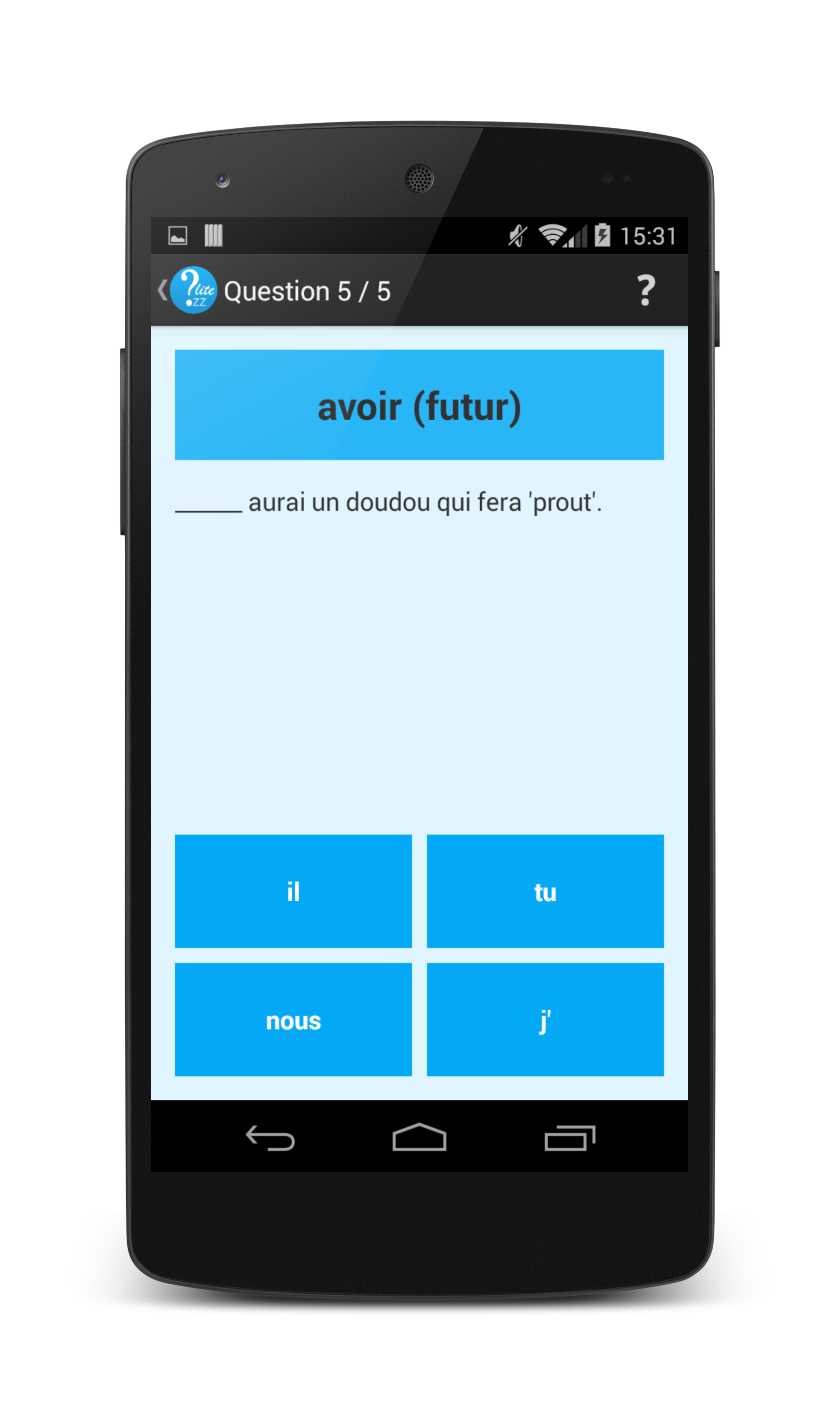 ConjuQuizz genera quiz di coniugazione tracciando domande da un database di oltre 4.000 record, a seconda delle impostazioni dell'utente.