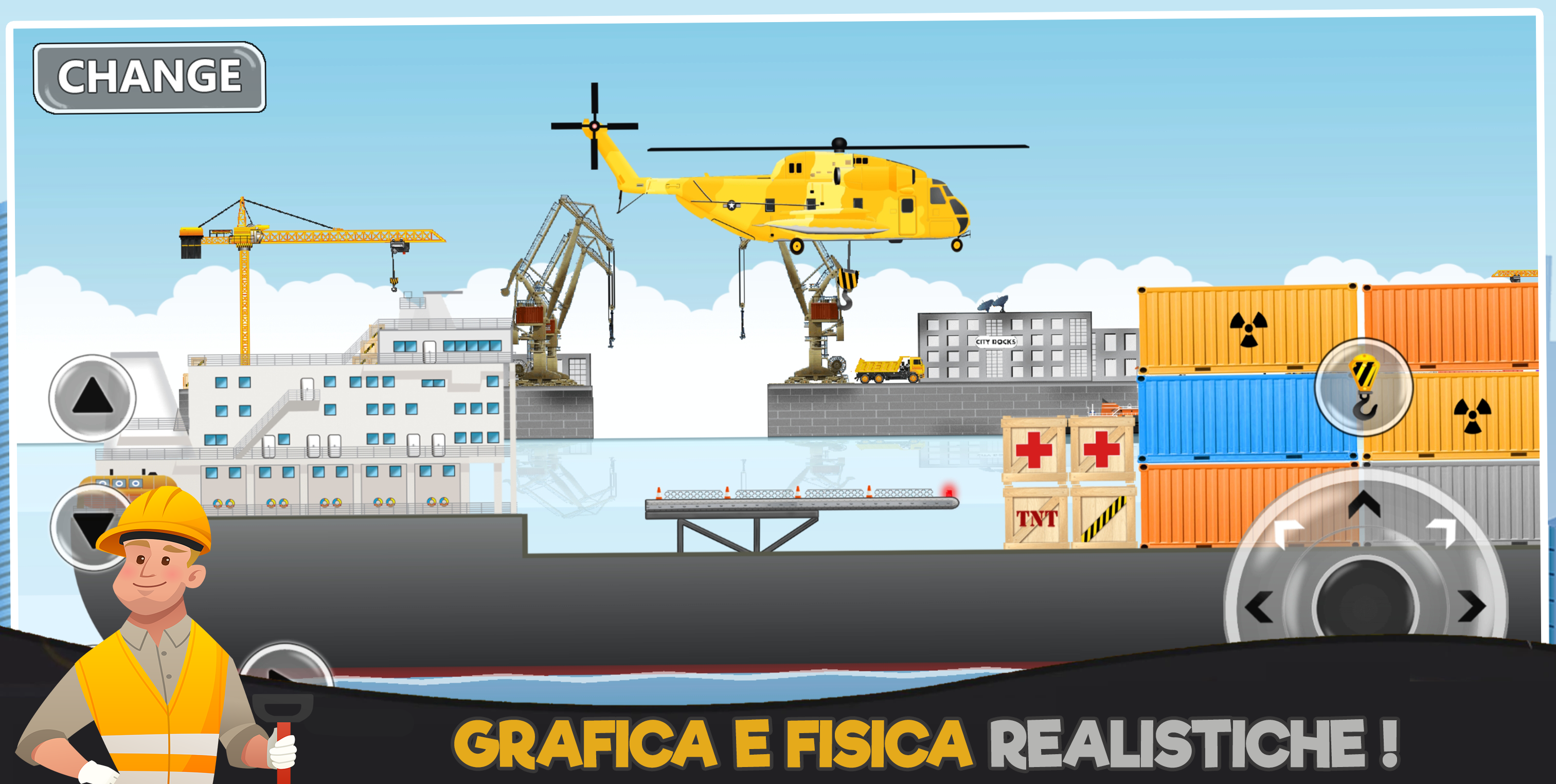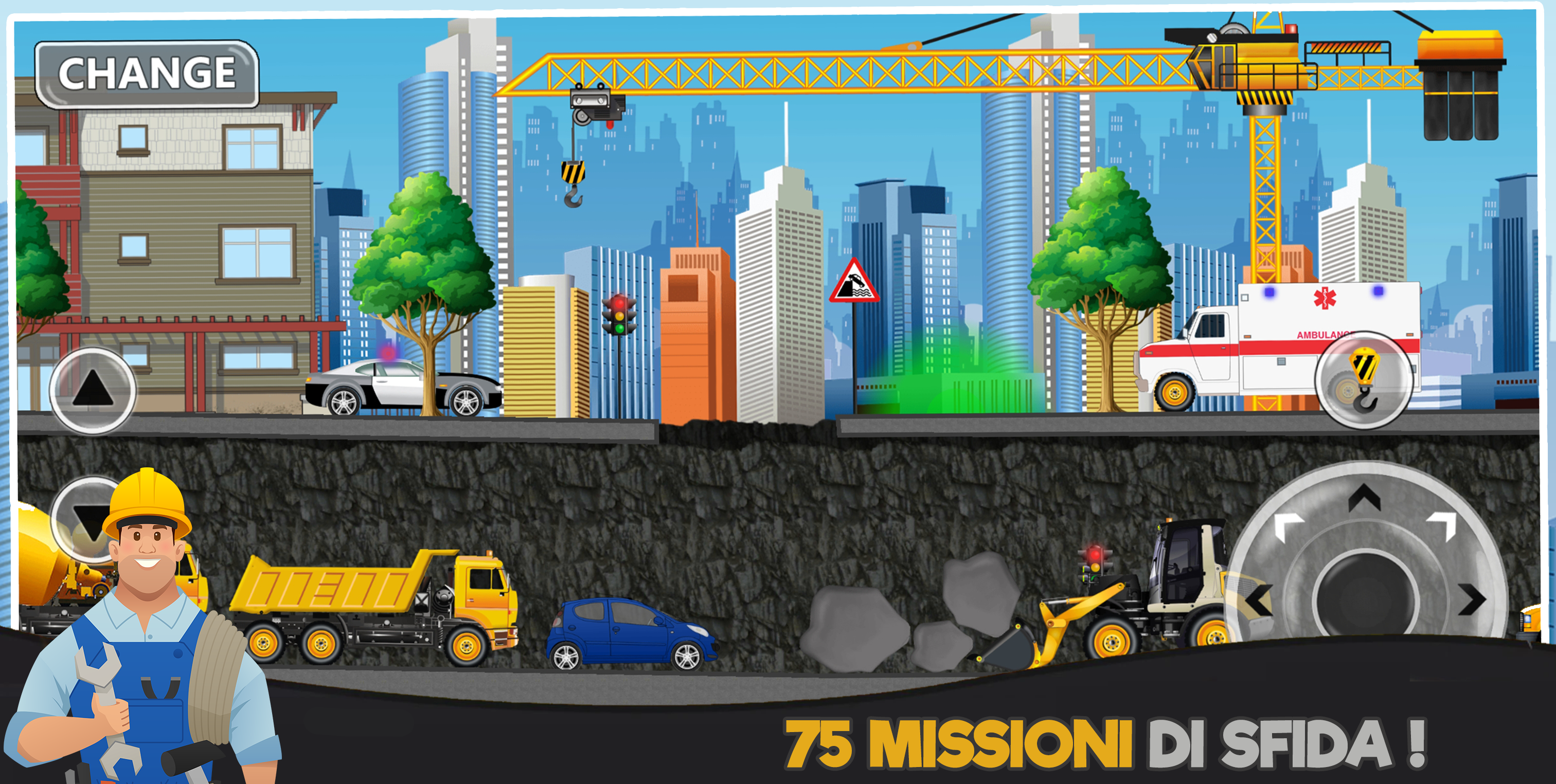 Construction World è un gioco di puzzle gratuito per la costruzione della città in cui controlli i veicoli da costruzione come gru, compattatori, escavatori, autocarri, trattori, elicotteri, carrelli elevatori per ricostruire una città gravemente danneggiata da un terremoto. Se ami il compito della costruzione virtuale, allora questo gioco è semplicemente destinato a te. Con il download di game di costruzione hai davvero la possibilità di esplorare: • 6 mondi di disastri da ricostruire nel tuo stile personale • 100 livelli con controllo realistico • 48 veicoli di costruzione, di ricognizione e disaster management completamente controllati - Elicotteri, camion antincendio, trattore, digger, compattatore, gru telescopica, bulldozer, navi, camion rimorchi gru per container e molto altro ancora. • Stunning grafica di alta qualità • Costruire edifici, ponti, binari ferroviari, sotto tunnel della metropolitana dell'acqua. • Disperdere le mine, salvare i civili e smaltire le bombole radioattive in modo sicuro. Il mondo della costruzione è un gioco di simulatore, gioco del trattore, un gioco di guida, un gioco di costruzione di ponte, un gioco di corse, gioco di puzzle di fisica tutto in uno! E 'l'ultimo gioco di costruzione che offre un vasto mondo navigabile liberamente per scoprirlo !! Così, scaricare giochi di costruzione per sperimentare divertimento illimitato! Speri che ami il mondo della costruzione. Questo è uno dei migliori giochi di costruzione per gli utenti android che desiderano per intrattenimento senza fine. Il mondo della costruzione è il miglior gioco di costruzione gratuito sul negozio di giochi! Permette di esplorare diversi mondi tematici applicando fisica realistica. Quindi, completare più livelli usando tutti quegli incredibili veicoli potenti e prendere il controllo.