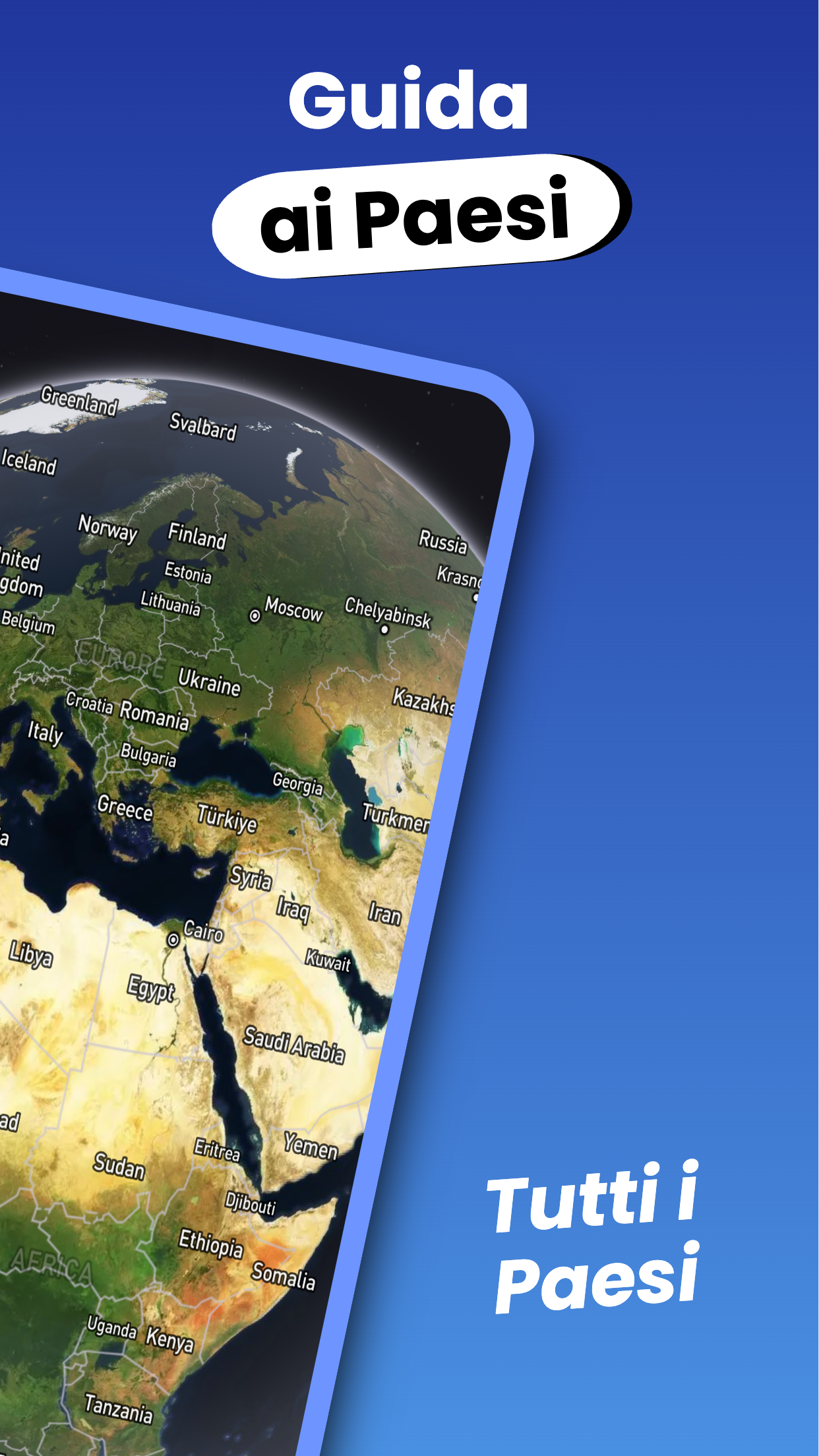 Il modo migliore per conoscere i paesi! Esplora i continenti di Europa, Asia, Africa, Nord America, Sud America e Oceania e scopri informazioni sui paesi al loro interno. Questa app ti permette di ricercare rapidamente i paesi. Scaricando l’app: - Puoi chattare con l’AI sul paese che preferisci e fare ricerche online. - Puoi comprendere meglio il mondo e la posizione dei paesi con mappe moderne. - Puoi prendere appunti sui paesi—perfetto per pianificare viaggi. - Puoi contrassegnare i paesi che hai ricercato, che vuoi visitare o che hai già visitato. - Puoi leggere articoli sui paesi, la storia, l’economia, la geografia, la cultura e l’arte. Chiedi all’AI qualsiasi cosa ti incuriosisca riguardo a paesi del mondo, città, eventi storici, capitali e attrazioni turistiche, e ricevi risposte istantanee. Migliora le tue conoscenze geografiche con i giochi basati sull’AI: il Gioco delle Capitali e il Gioco Indovina il Paese. Perfetto per viaggiatori, studenti, appassionati di geografia o chiunque voglia acquisire conoscenze approfondite sui paesi. Con un vasto database, la mappa del mondo e il supporto dell’AI, è una piattaforma informativa completa. Arricchisci la tua cultura generale con questa app. Inizia a esplorare il mondo subito scaricando l’app! Con un solo tocco, accedi a informazioni approfondite sui paesi e rafforza le tue conoscenze con giochi di geografia. Allarga i tuoi orizzonti scoprendo culture, lingue, bandiere e caratteristiche geografiche da tutto il mondo. Goditi il piacere di imparare. Questa app ti guiderà a conoscere i paesi!
