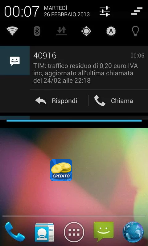 Con un solo click richiedi il credito della tua scheda Tim(Italia) tramite sms...Non necessita di connessione internet! Attenzione all'utilizzo con dualsim,per ora il programma non distingue le due sim.