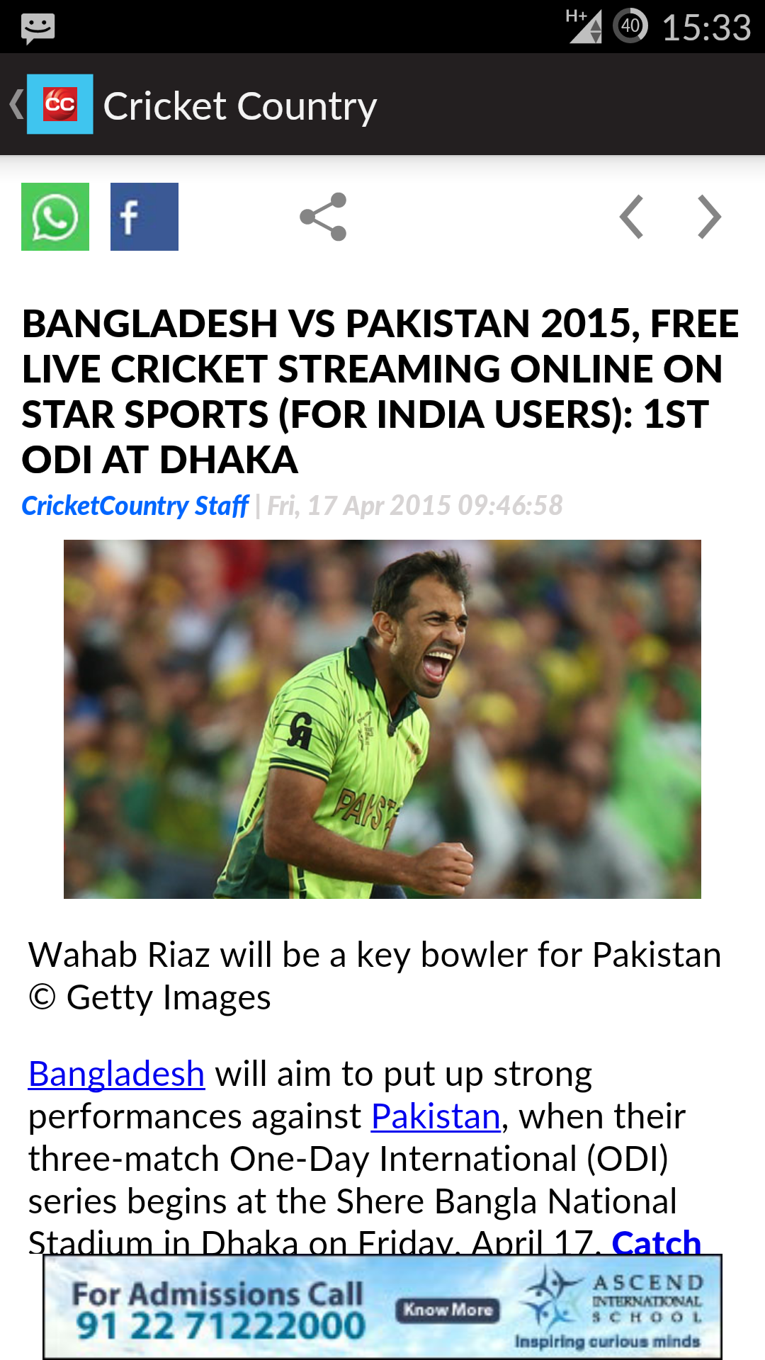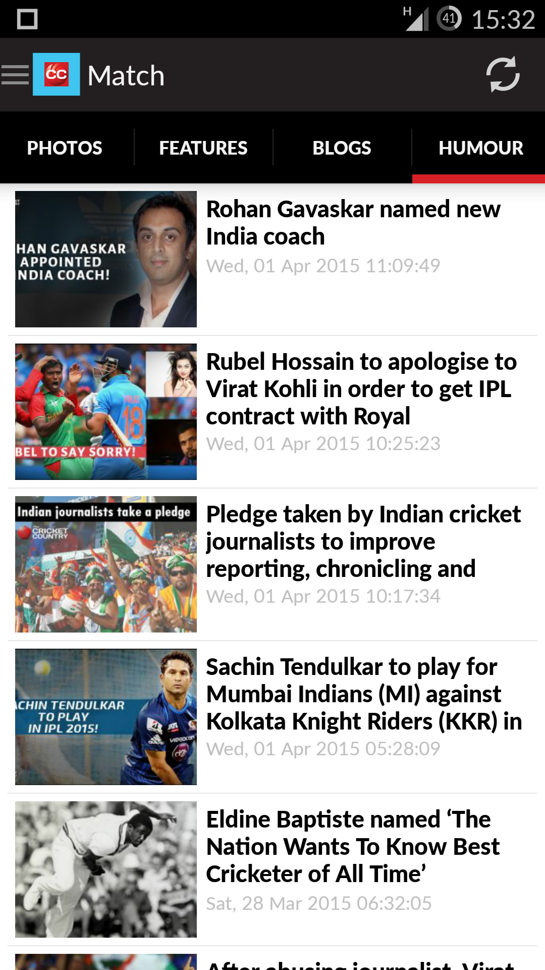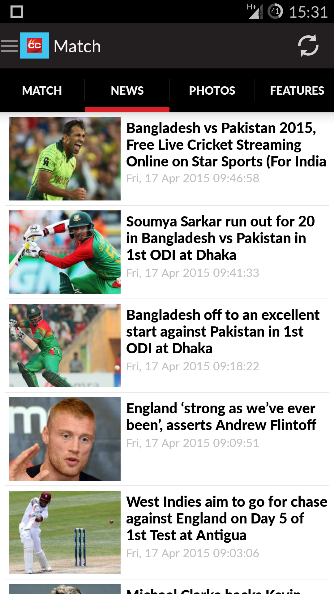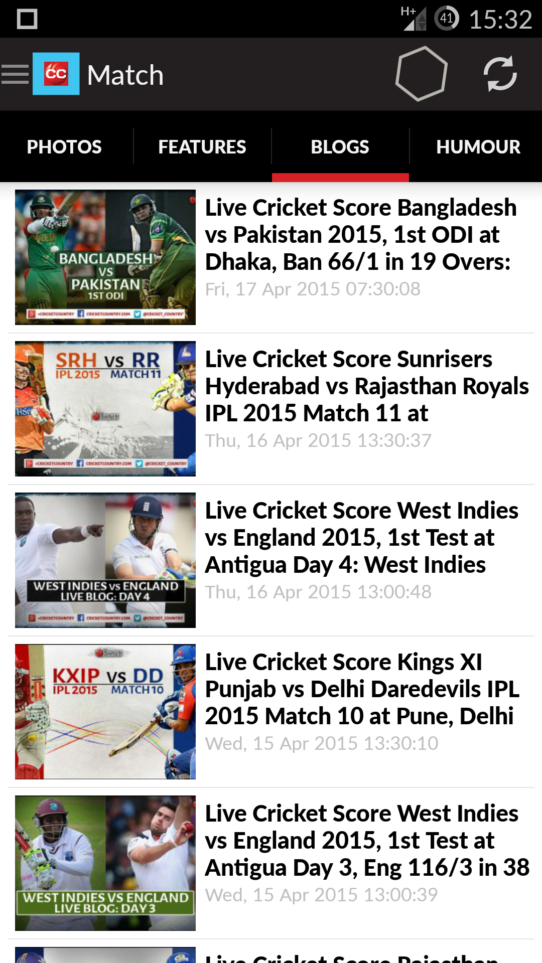 *Description One of the largest cricket websites in the world, Cricket Country ( www.cricketcountry.com ) has now come out with the app that will meet all your demands. From latest news to daily features, live blogs to live scorecards, points tables to match galleries, you can find it all here. With Indian Premier League (IPL) 2015 going on, get your cricket fix right here! If you are more interested in news then don't worry; we have you covered. We update our news section with tremendous regularity, with news from all over the cricketing world. If you want to read in-depth analysis of happenings around the world, then you need not look further. You can read facts and figures, opinion pieces, humorous satires, interviews, profiles, reviews, and more. If you are busy travelling, or giving your android Smartphone one final glance before you go to sleep, and want to make sure you haven't missed out on any cricket-related news, this is the app for you. We realise that you might want a vast selection of news and articles to go through, and we have enough original content to keep you engaged throughout the day. Find previews, news, scorecards, articles, and much, much more! *Introduction: - One of the top Cricket Apps on Google Play. - In depth coverage and analysis of all International series, ICC tournaments, Indian Premier League (IPL), Champions League T20 (CLT20), and more. - Lots of features every day, player profiles, interviews, loads of cerebral and analytical facts and figures pieces. *Top Features: - Live cricket coverage, scores, and ball-by-ball commentary with the help of both live scorecards and live blogs. - Alerts and notifications for all the big news and game-changing moments in live matches. - Lots of facts and figures for the numerically inclined. - Latest cricket news and features that will both inform and entertain. - Photo galleries, so that even if you miss watching the match, you can get a visual picture of it all. - Series pages where you can find all the scores, galleries, blogs, news, articles, and more for any given series. - Results page so that you never have to go looking if you miss out on any of the action. - Pages for live and forthcoming matches all in one place. - Player bios and profiles, with their stats and stories. - Points table for all major tournaments; ICC tournaments, tri-series, Indian Premier League (IPL), Champions League T20 (CLT20), and more.