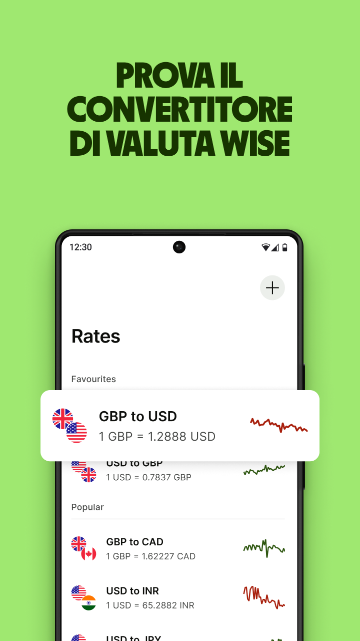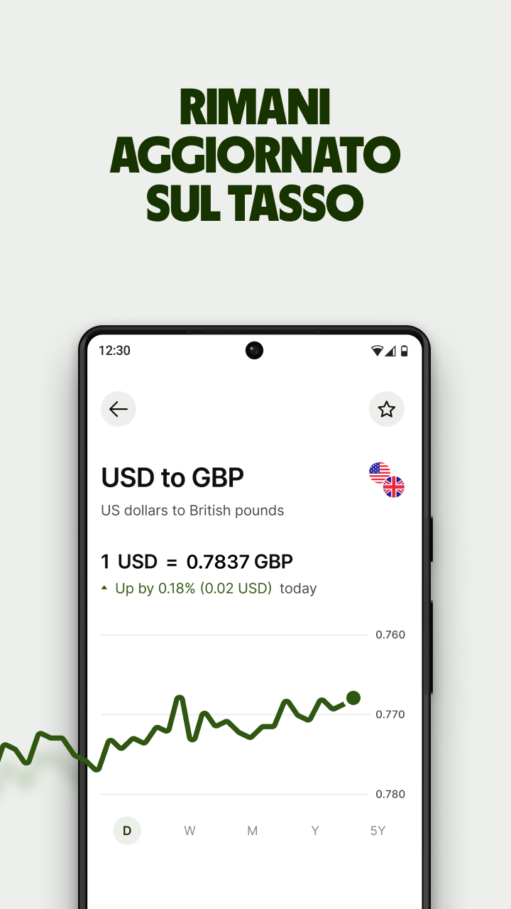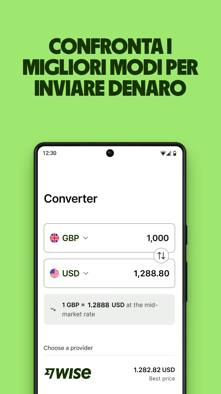 Monitora i tassi di cambio in tempo reale. Confronta i migliori operatori. Gratuito. Semplice. Controlla le variazioni del tasso nell'ultimo giorno, o negli ultimi 500. Aggiungi le valute che usi più spesso — o che semplicemente vuoi tenere d'occhio — alle tue preferite, per un facile accesso. Sterline, dollari, pesos a volontà! Vuoi inviare denaro? O convertirlo? Controlla i costi dei migliori operatori — sia per il tasso di cambio che per le commissioni. Saprai esattamente quanto invierai e quanto arriverà. Commissioni e maggiorazioni nascoste rimarranno solo un brutto ricordo. Il Convertitore di valuta è solo un'app che dà informazioni e notizie sui tassi di cambio e non una piattaforma di scambio di valuta. Le informazioni ivi riportate non costituiscono consulenza finanziaria.