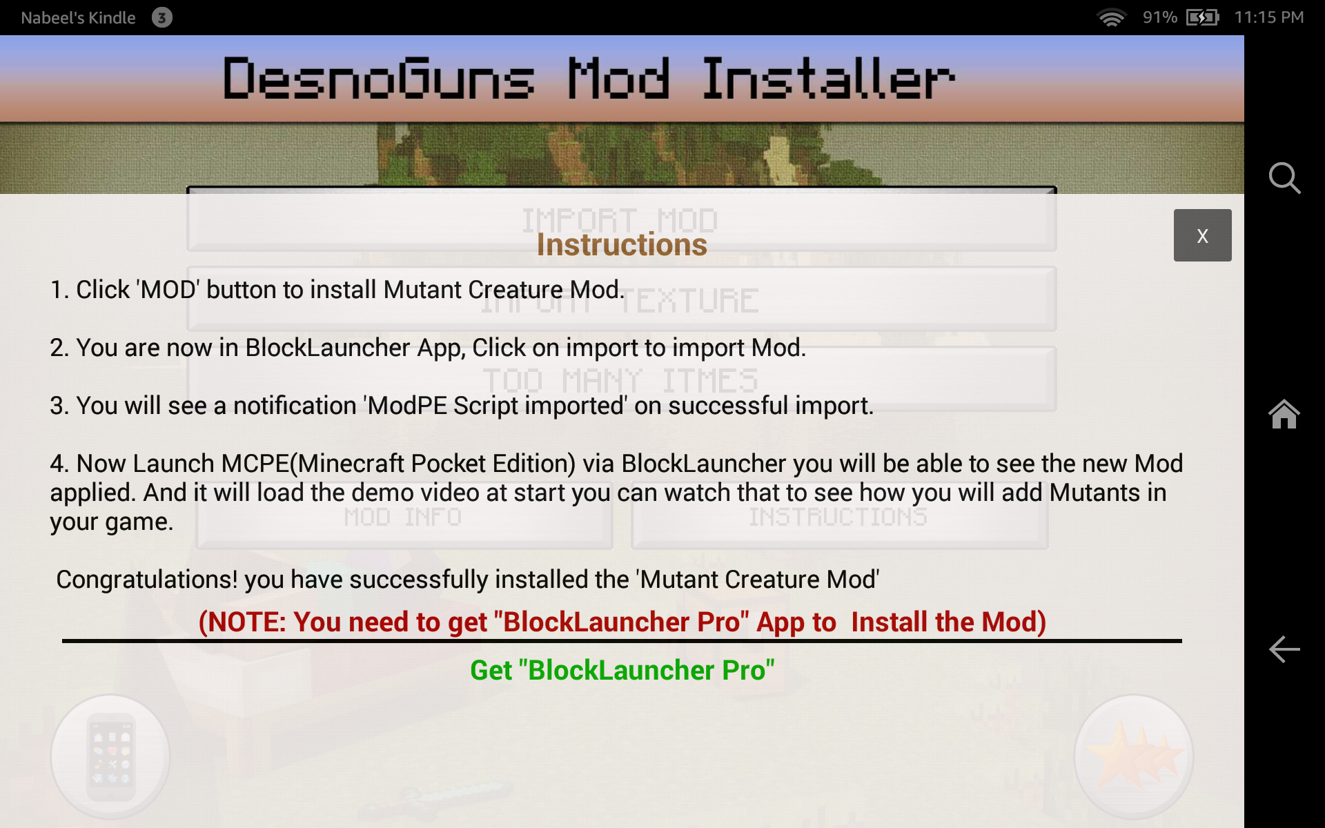 Note: BlockLauncher app is required to install DesnoGun Mod. get it here https://play.google.com/store/apps/details?id=net.zhuoweizhang.mcpelauncher