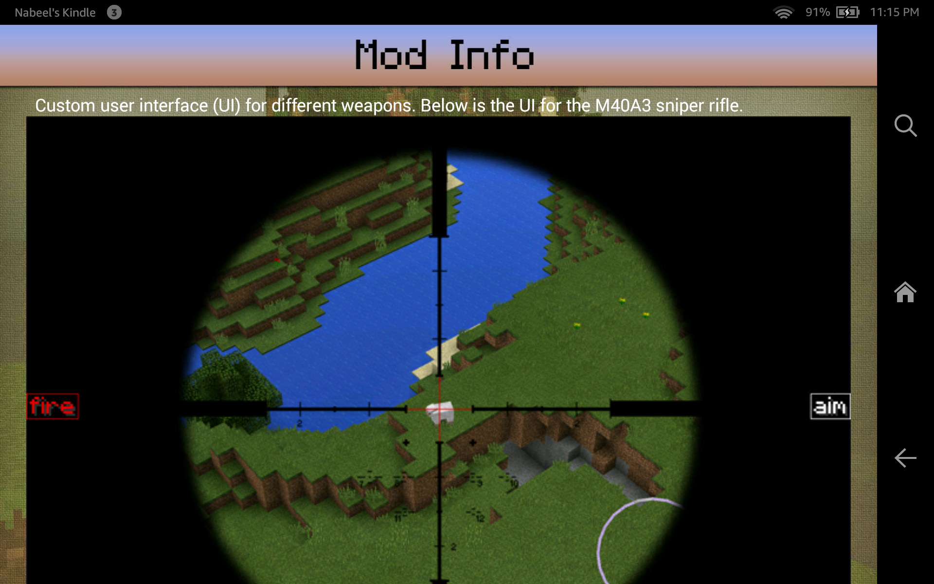 This is an unofficial guns mod for Minecraft Pocket Edition. This mod is not affiliated in any way with Mojang AB. The Minecraft Name, the Minecraft Brand and the Minecraft Assets are all property of Mojang AB or their respectful owner. All rights reserved. In accordance with http://account.mojang.com/documents/brand_guidelines