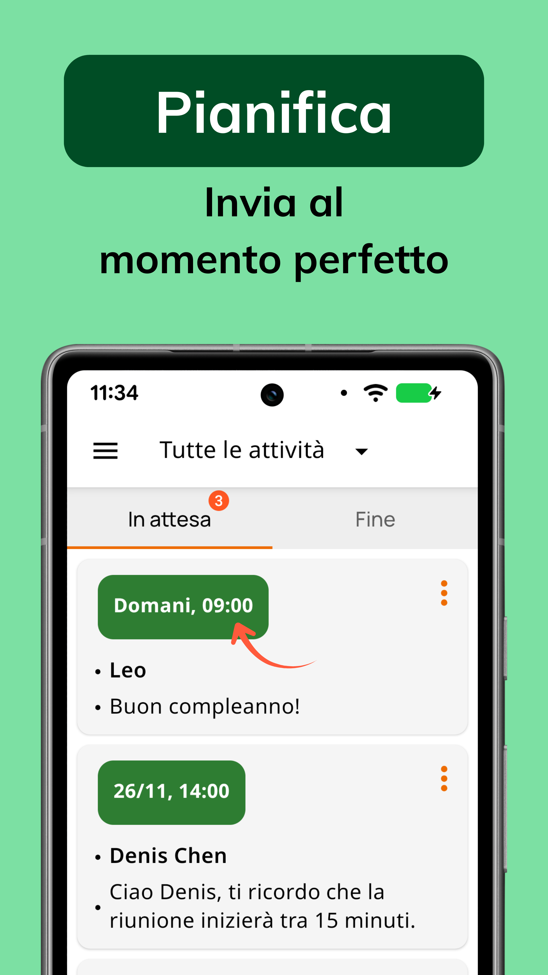 ✓ Non dimenticare mai più di inviare messaggi importanti.