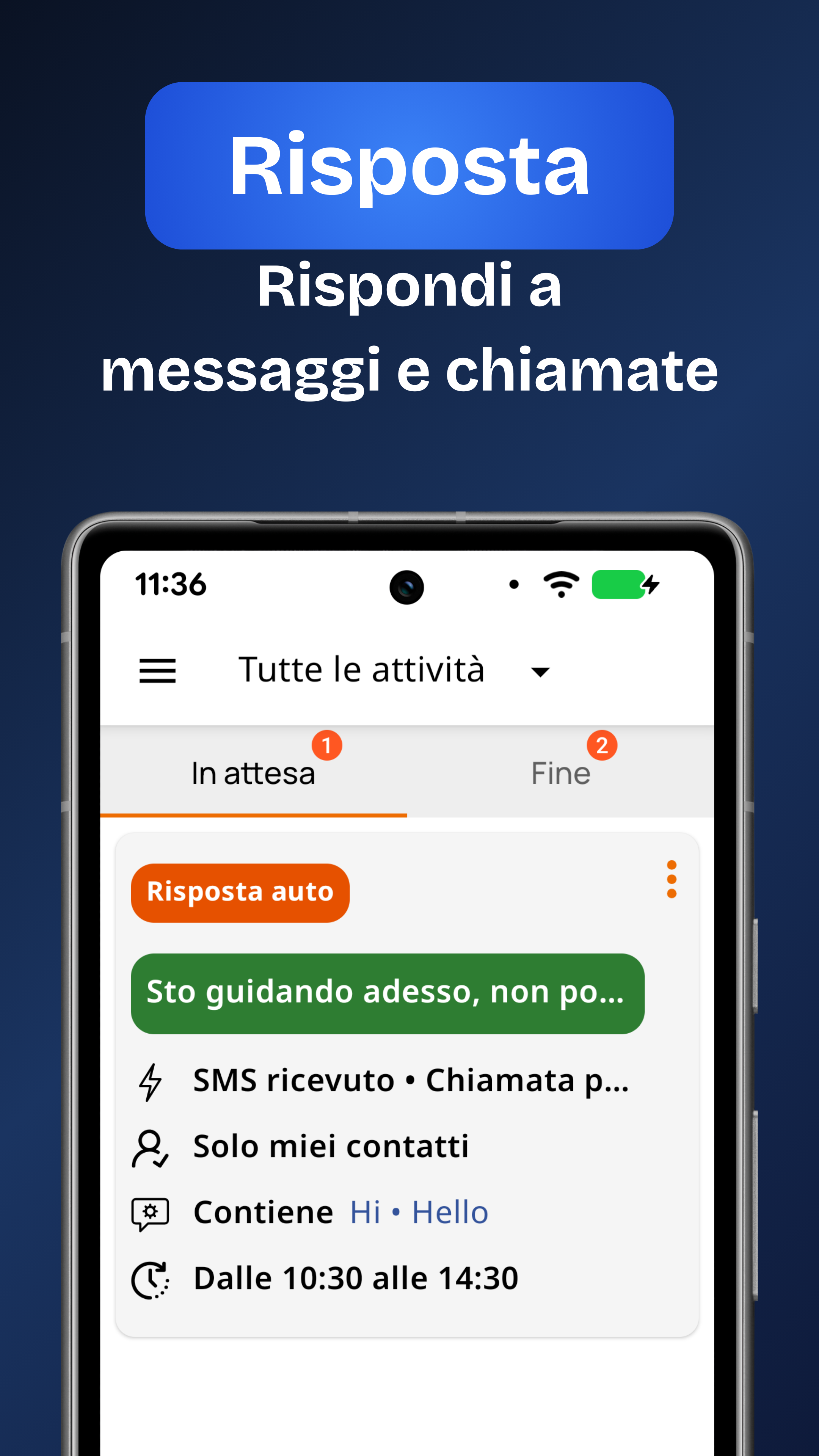 - Produttività a Mani Libere: Rispondi automaticamente ai messaggi in arrivo e alle chiamate perse mentre guidi, dormi o sei in riunione.