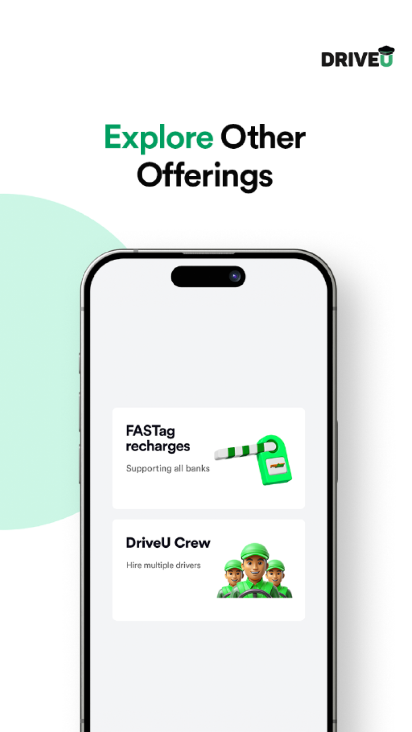 DriveU è la scelta di oltre 800.000 proprietari di auto in India per tutte le loro esigenze, tra cui l'assunzione di autisti professionisti, la manutenzione auto professionale, le ricariche FASTag e molto altro. Presente in tutte le principali città metropolitane, DriveU affronta le sfide dei proprietari di auto urbane con una suite completa di servizi. Con oltre 100.000 autisti formati e sottoposti a controlli dei precedenti, DriveU è la più grande piattaforma di servizi di autista on-demand in India. I nostri autisti sono sicuri, testati e formati professionalmente, il che li rende la scelta ideale per guidare le vostre auto private.