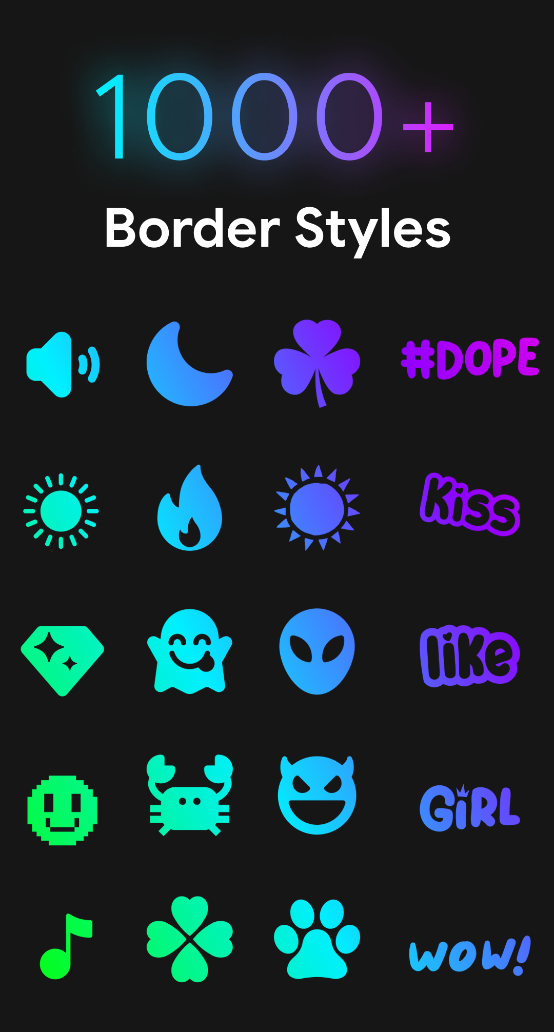 - Scegli il tipo di bordo EDGE Lighting, più di 500 tipi di bordi disponibili: ❤️ Cuore, 🐦 Uccello, ☀️ Sole, 🌸 Loto, ❄️ Fiocchi di neve, 🌺 Fiore, 😊 Faccina, ☁️ Nuvola, 🌙 Luna, ⭐ Stelle, 🎄 Albero di Natale, ecc.