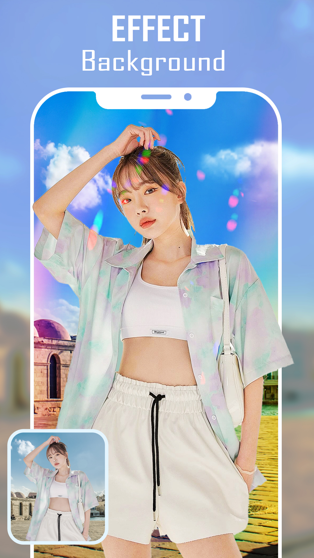 Another plus is that you don't have to move around and still have virtual travel photos at famous tourist destinations. Our application is designed with an improved interface that will help you combine photo backgrounds to create more glitter and shimmering moments.