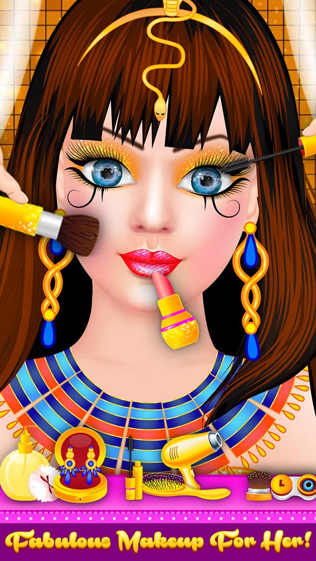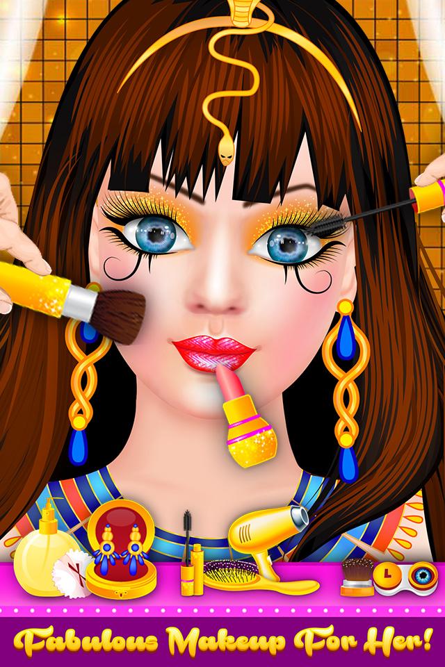 inizia il tuo salone di bellezza per bambole egiziane con trucco reale; scegli l'acconciatura da principessa, il trucco perfetto per gli occhi, il rossetto caldo e tanti accessori firmati; dai alla tua bambola egiziana un Guarda da sposa con gli ultimi abiti firmati reali.